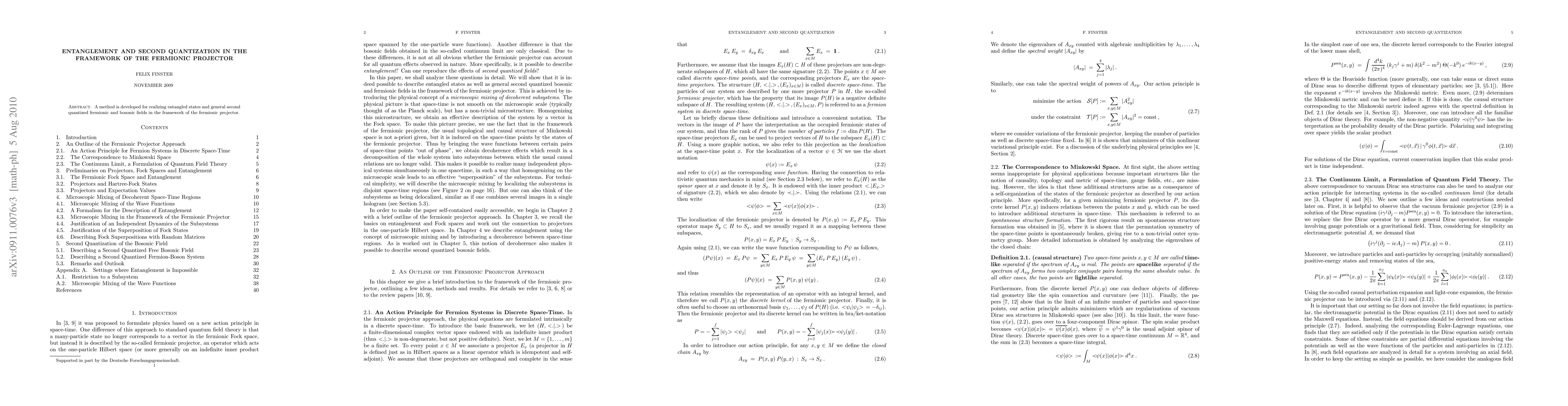Summary: This paper introduces a novel method for generating entanglement and second quantization of fermionic and bosonic fields using the fermionic projector framework, providing a new approach to quantum field theory.