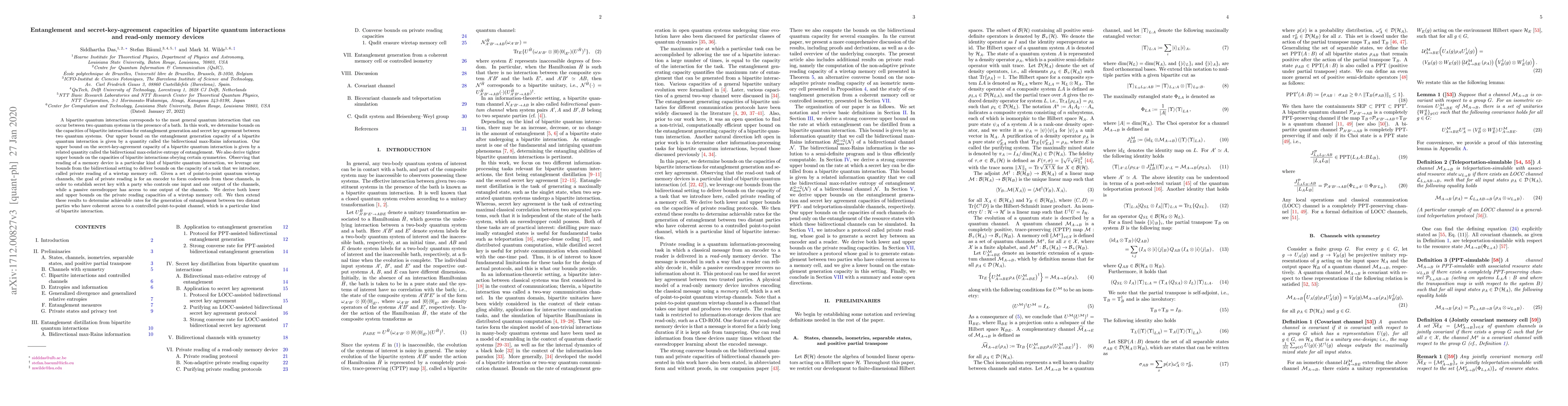 This paper establishes upper bounds on the capacities of bipartite quantum interactions for entanglement generation and secret key agreement, introducing new measures like bidirectional max-Rains information and max-relative entropy of entanglement. It also extends these bounds to private reading of wiretap memory cells, providing both lower and upper bounds on their capacities.