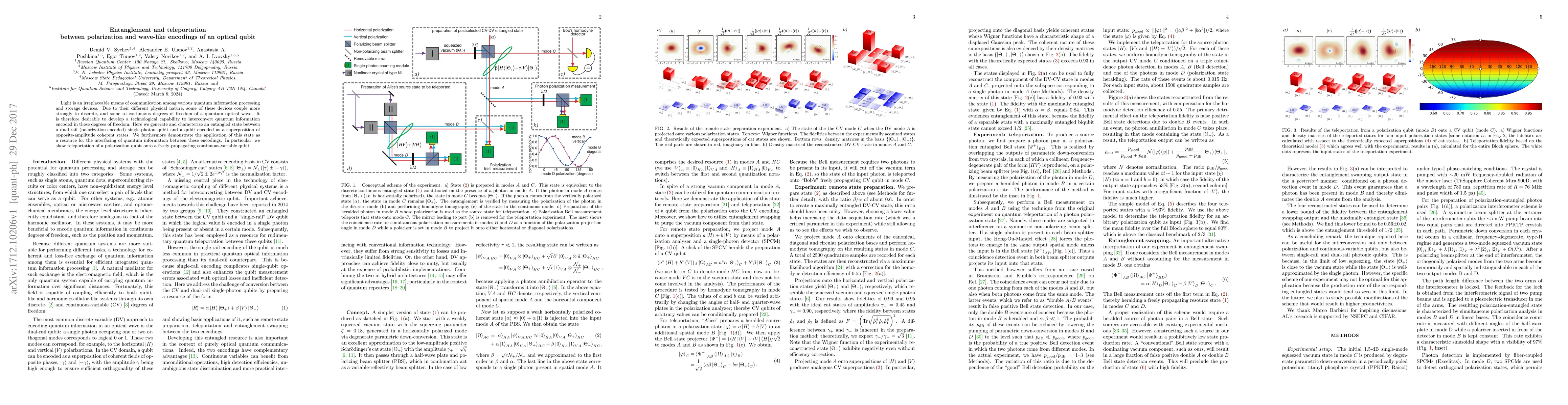 This paper generates and characterizes an entangled state between polarization-encoded and wave-like coherent state qubits, demonstrating its use for teleportation of a polarization qubit onto a continuous-variable qubit, facilitating interconversion between different quantum information encodings.