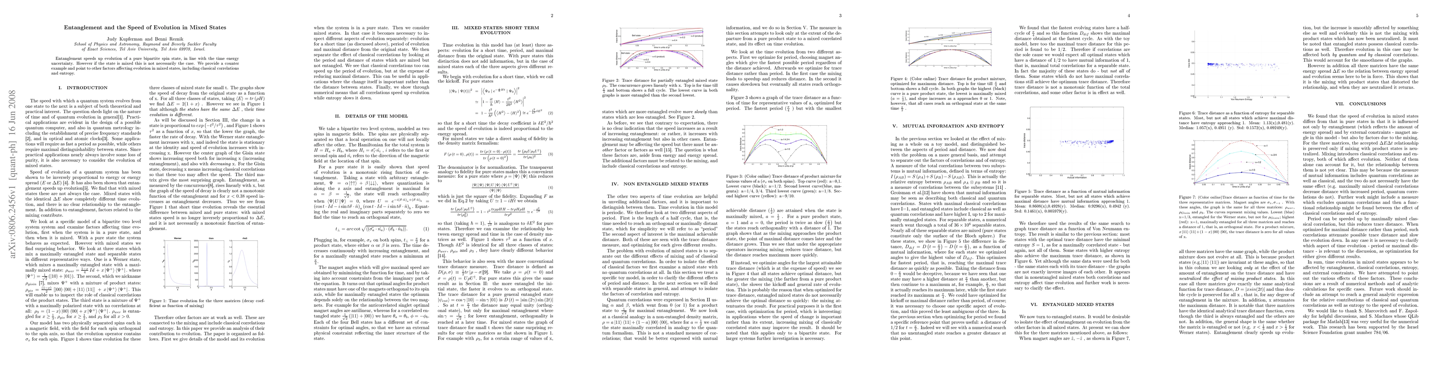 Entanglement speeds up evolution of a pure bipartite spin state, in line with the time energy uncertainty. However if the state is mixed this is not necessarily the case. We provide a counter example and point to other factors affecting evolution in mixed states, including classical correlations and entropy.