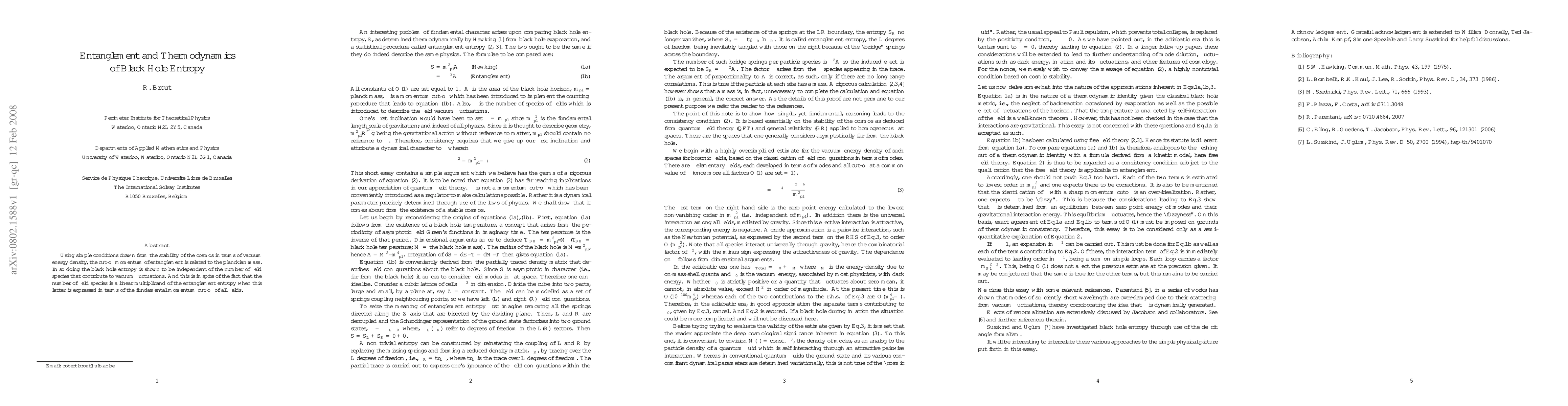 Using simple conditions drawn from the stability of the cosmos in terms of vacuum energy density, the cut-off momentum of entanglement is related to the planckian mass. In so doing the black hole entropy is shown to be independent of the number of field species that contribute to vacuum fluctuations. And this is in spite of the fact that the number of field species is a linear multiplicand of the entanglement entropy when this latter is expressed in terms of the fundamental momentum cut-off of all fields.