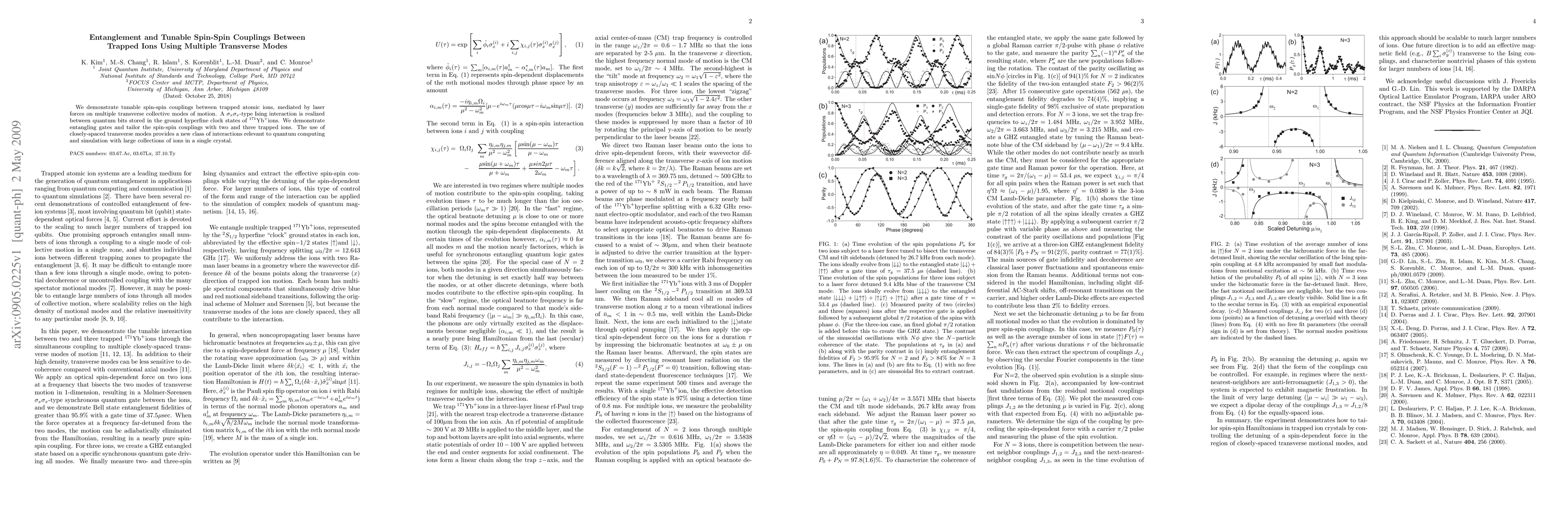 Researchers demonstrate tunable spin-spin couplings between trapped ions using laser forces on multiple transverse modes, enabling entangling gates and tailored interactions relevant to quantum computing and simulation.
