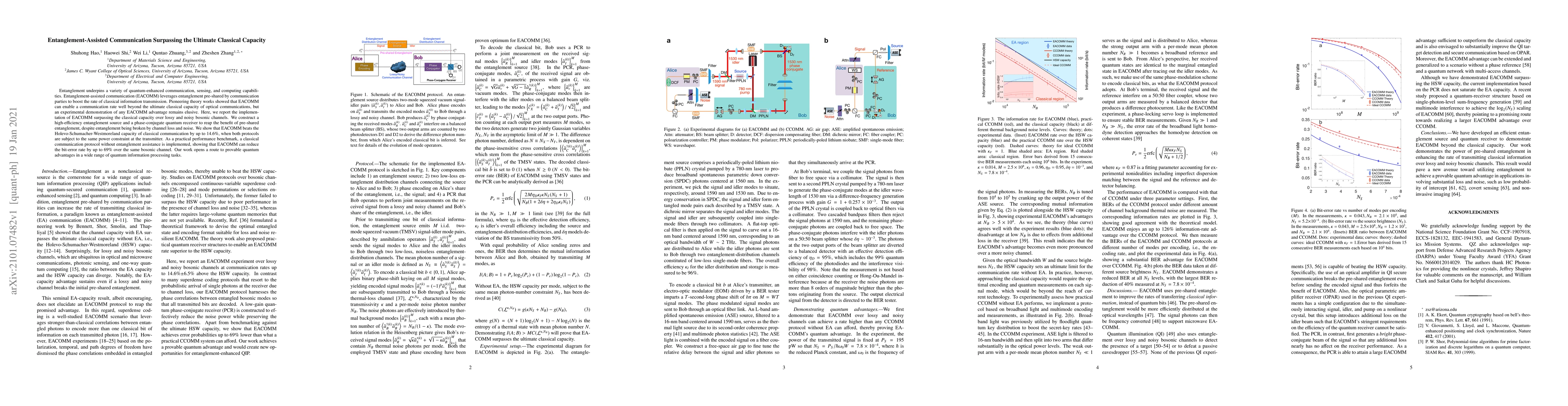 This paper demonstrates the first experimental realization of entanglement-assisted communication (EACOMM) surpassing the classical capacity over lossy and noisy channels, achieving up to 14.6% improvement and reducing bit-error rate by up to 69% compared to classical methods.