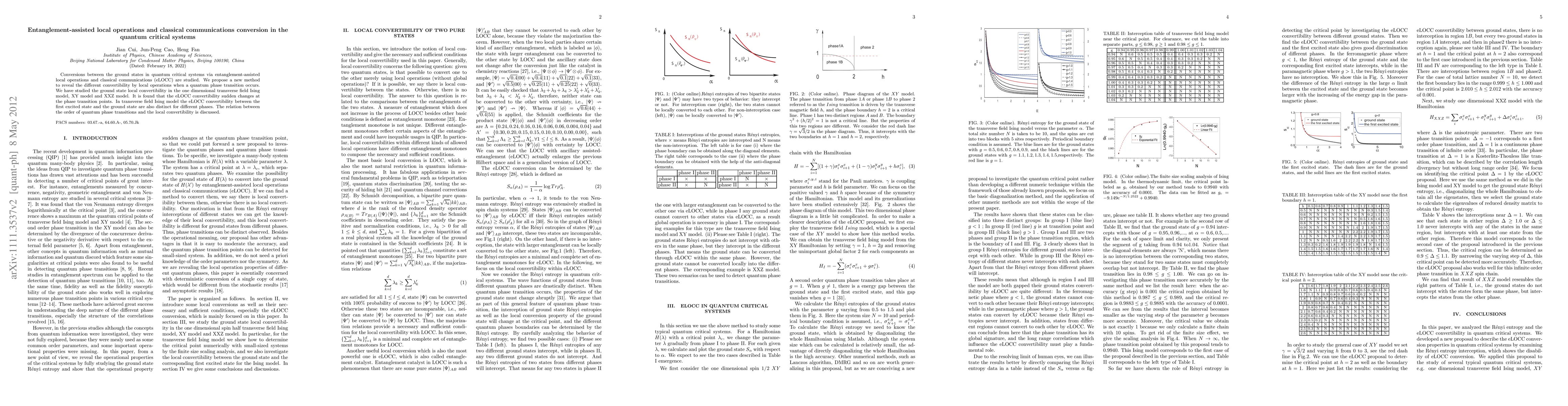 This paper investigates the entanglement-assisted local operations and classical communication (eLOCC) for converting ground states in quantum critical systems, revealing significant changes in convertibility at phase transition points. The study focuses on the one-dimensional transverse field Ising, XY, and XXZ models, finding that eLOCC convertibility alters abruptly at transition points and varies between excited states in the Ising model, linking the order of quantum phase transitions to local convertibility.