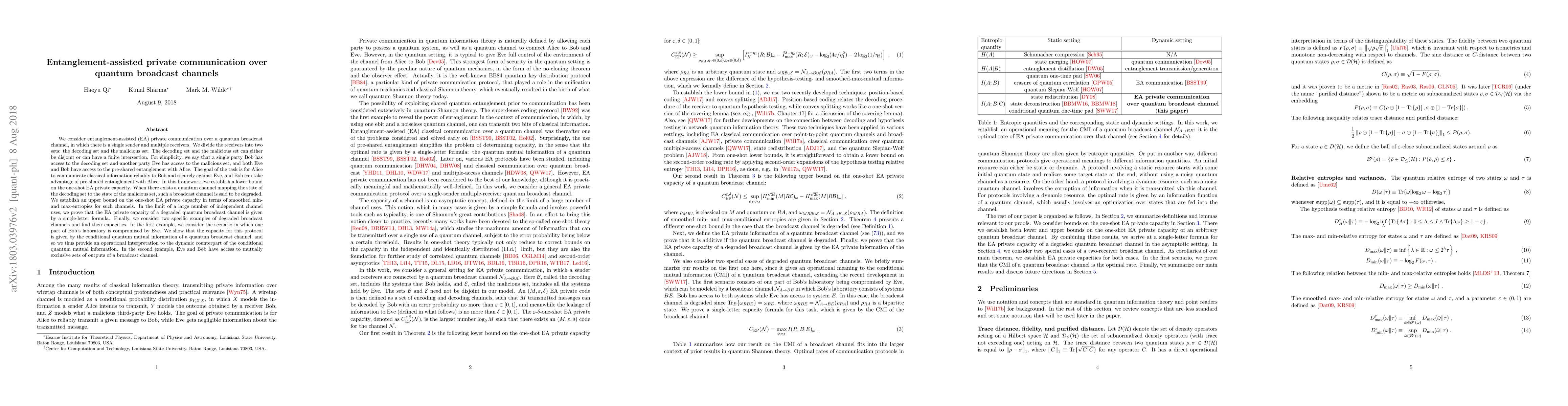 The paper defines degraded quantum broadcast channels and proves a single-letter EA private capacity formula for them, along with capacity formulas for specific channel examples.