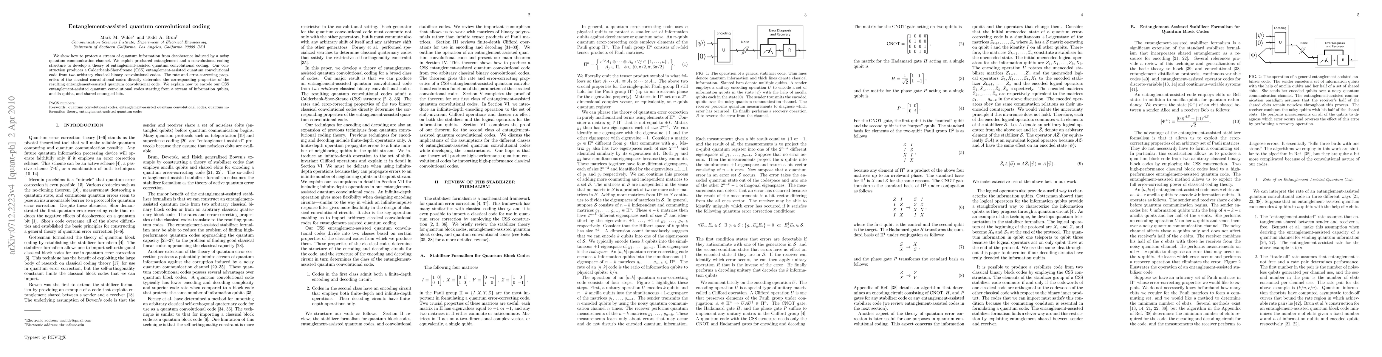 This paper develops a method to protect quantum information from decoherence using entanglement-assisted quantum convolutional coding, constructing a CSS code from classical binary convolutional codes and detailing the encoding process with information qubits, ancilla qubits, and shared entangled bits. The rate and error-correcting properties are directly influenced by the underlying classical codes.