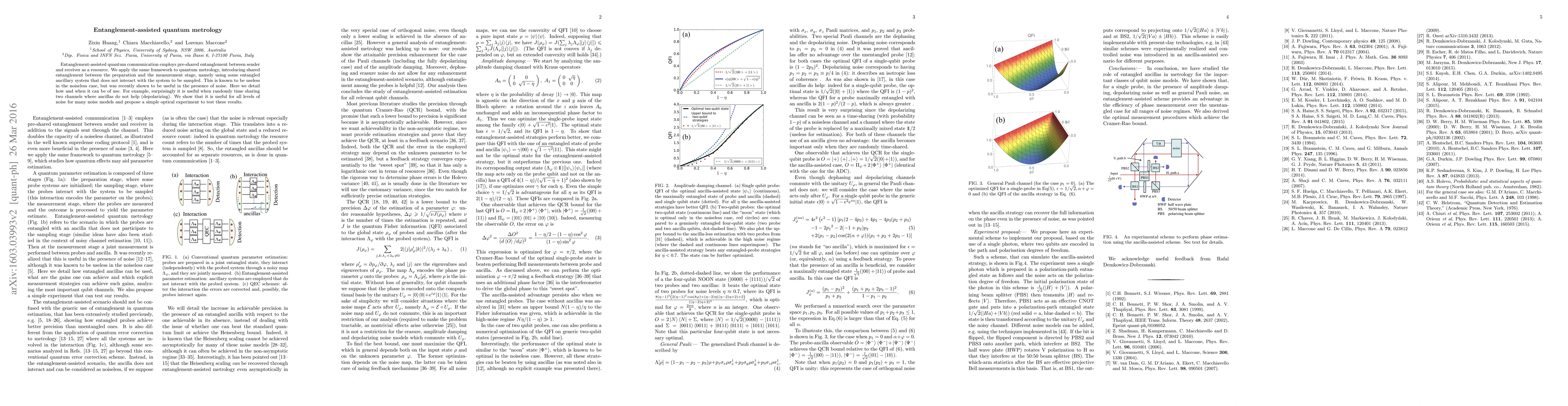Entanglement-assisted quantum communication employs pre-shared entanglement between sender and receiver as a resource. We apply the same framework to quantum metrology, introducing shared entanglement between the preparation and the measurement stage, namely using some entangled ancillary system that does not interact with the system to be sampled. This is known to be useless in the noiseless case, but was recently shown to be useful in the presence of noise. Here we detail how and when it can be of use. For example, surprisingly it is useful when randomly time sharing two channels where ancillas do not help (depolarizing). We show that it is useful for all levels of noise for many noise models and propose a simple experiment to test these results.