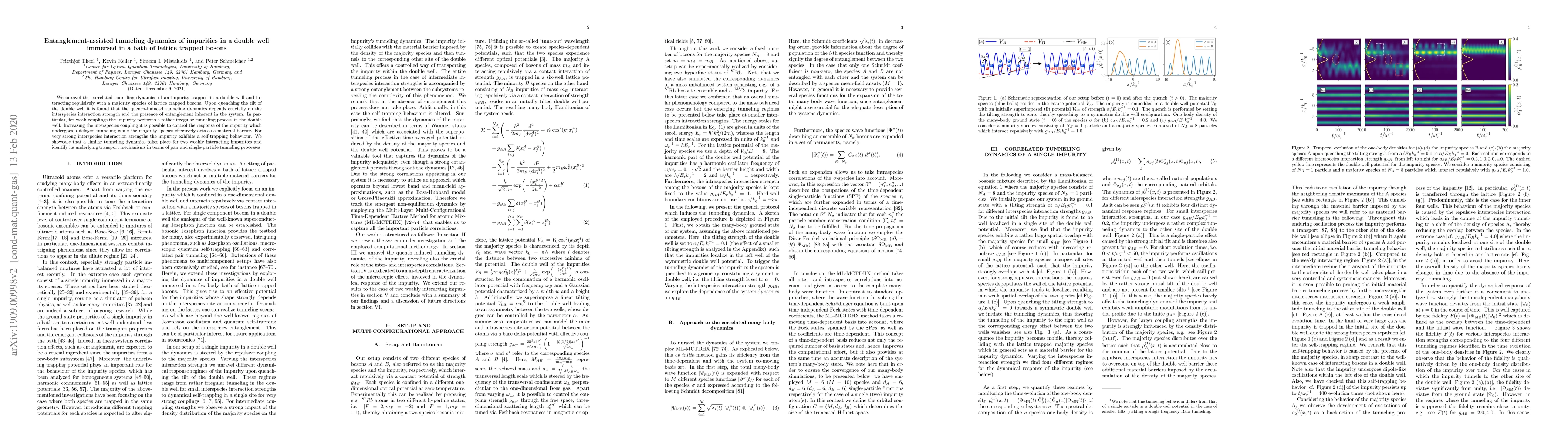 This paper investigates the tunneling dynamics of an impurity in a double well interacting with lattice trapped bosons, revealing that entanglement and interspecies interaction strength significantly influence the impurity's tunneling behavior, transitioning from irregular to delayed tunneling and self-trapping, and extending findings to two weakly interacting impurities.
