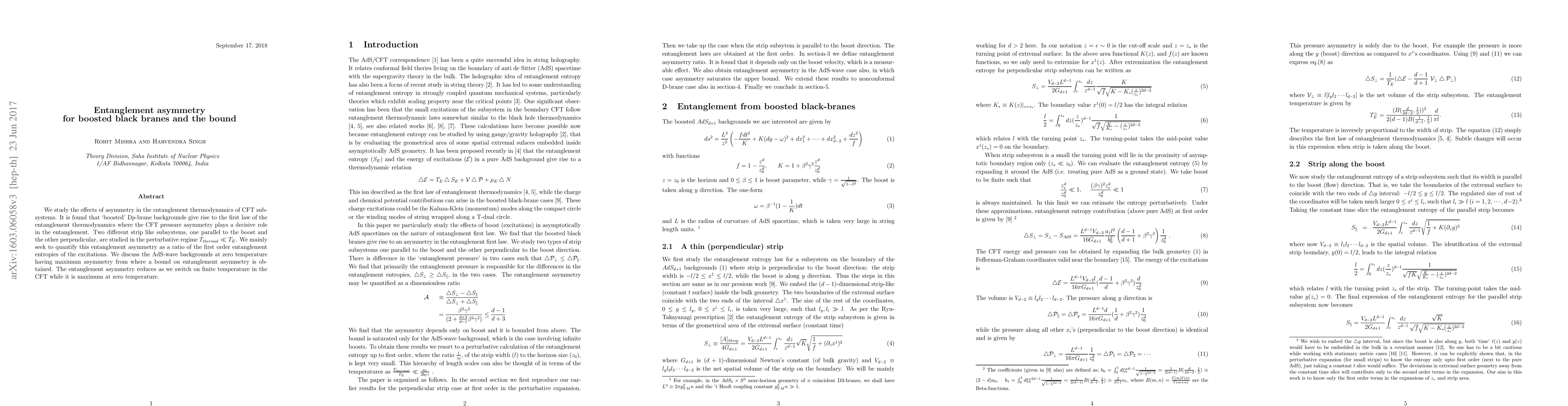 This paper investigates the entanglement asymmetry in thermodynamic properties of conformal field theory subsystems in boosted $p$-brane backgrounds, revealing the significant role of CFT pressure in entanglement dynamics. The study compares two subsystems, one parallel and one perpendicular to the boost, in the perturbative regime, and discusses universal bounds in AdS-wave backgrounds.