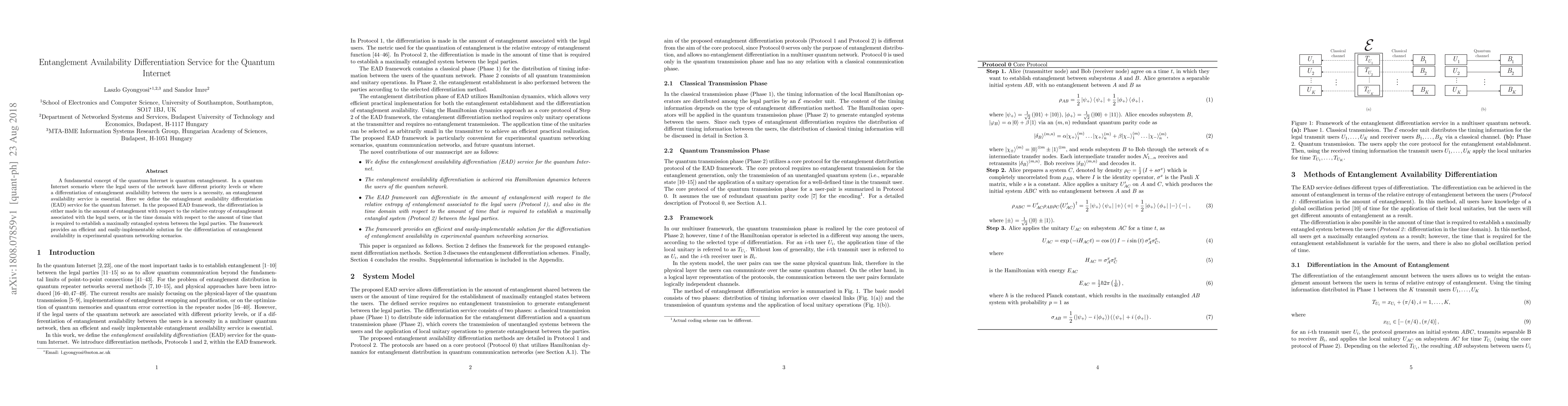 This paper proposes an Entanglement Availability Differentiation (EAD) service for the quantum Internet, addressing the need for varying levels of entanglement among users based on priority. The EAD framework differentiates either by the amount of entanglement or by the time required to establish entanglement, offering a practical solution for experimental quantum networking.