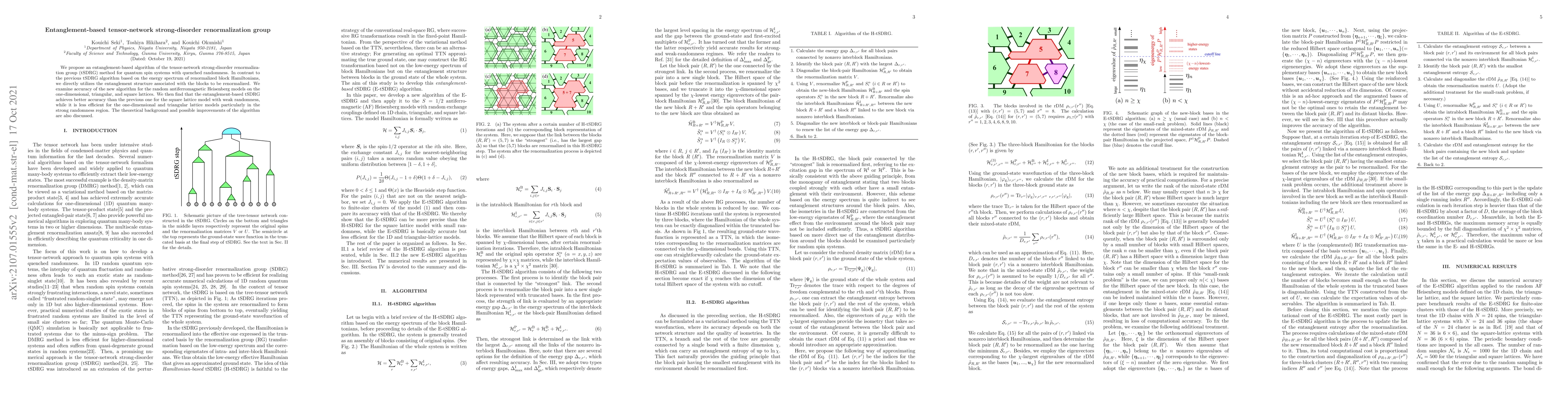 This paper proposes a new entanglement-based tensor-network strong-disorder renormalization group (tSDRG) algorithm for quantum spin systems with randomness. The new method shows improved accuracy for the square lattice model but is less efficient for one-dimensional and triangular lattices, especially under strong randomness.