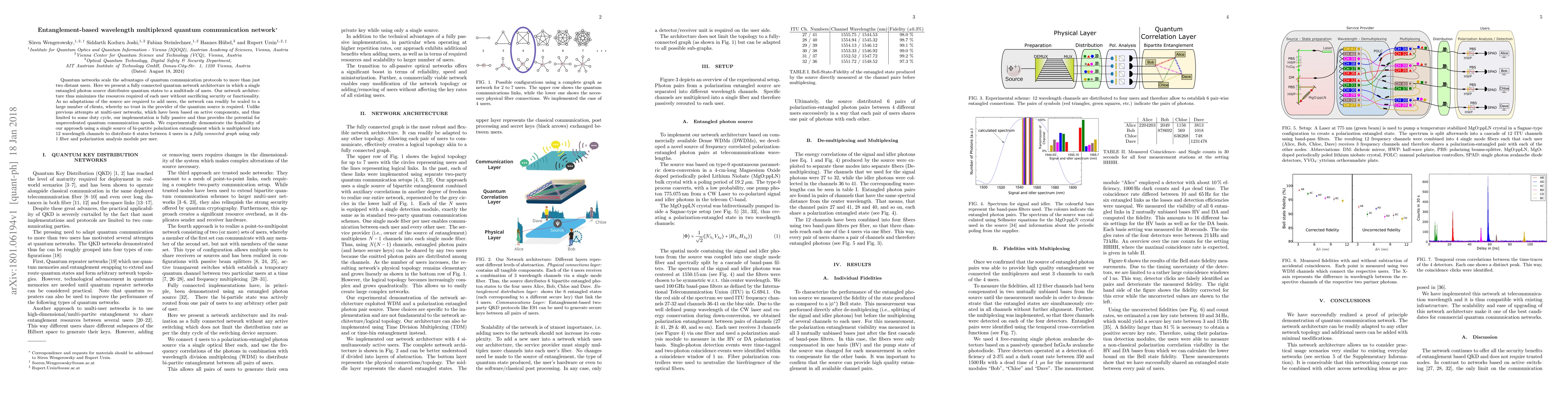 This paper proposes a fully connected quantum communication network utilizing entanglement-based wavelength multiplexing to distribute quantum states to multiple users efficiently. The network architecture is scalable, passive, and secure, requiring no trust in the provider, and experimentally demonstrates the distribution of 6 states among 4 users using 12 wavelength channels.