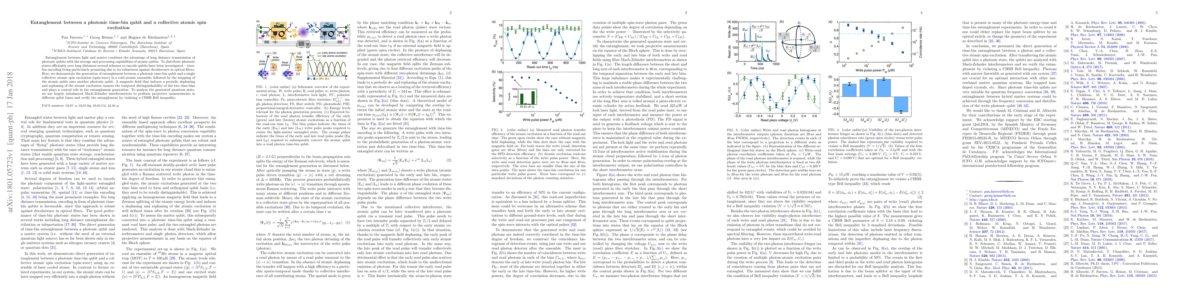 This paper demonstrates the generation of entanglement between a photonic time-bin qubit and a collective atomic spin excitation in a cold atomic ensemble, utilizing a magnetic field to ensure temporal distinguishability. The entanglement is verified by violating a CHSH Bell inequality using projective measurements.