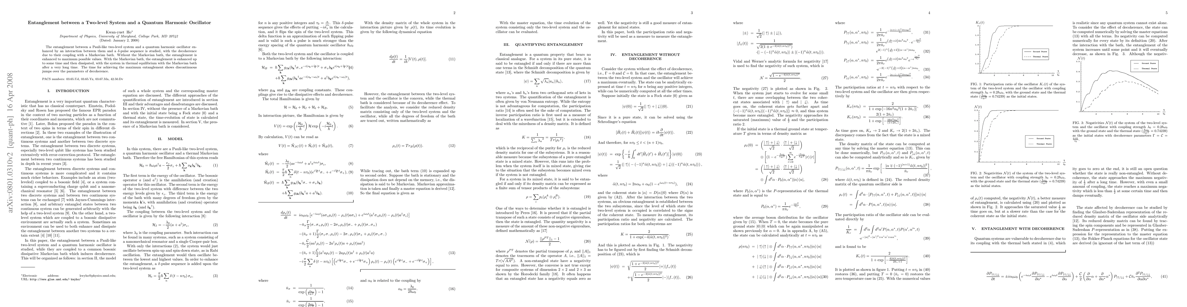 The paper presents a detailed analysis of entanglement dynamics in a two-level system coupled to a quantum harmonic oscillator, considering both coherent and thermal initial states and the impact of decoherence.