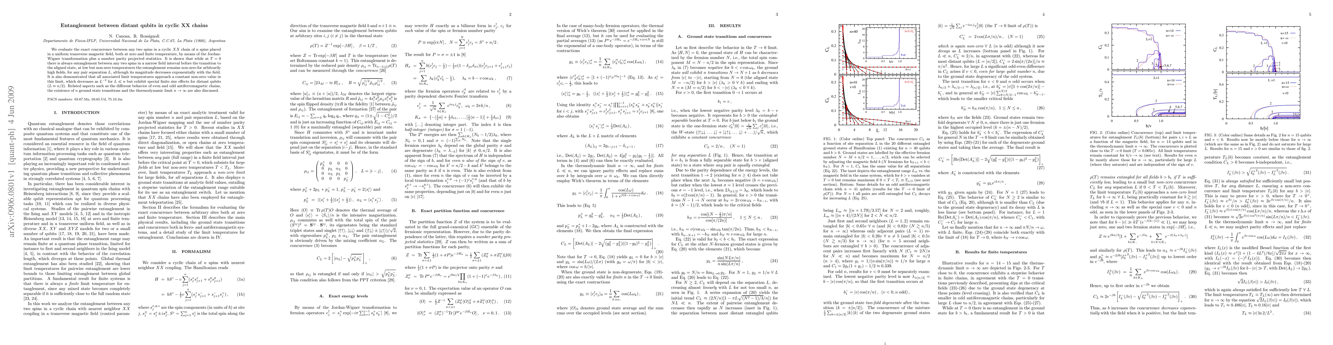 This research paper examines entanglement in cyclic XX spin chains under uniform magnetic fields at zero and finite temperatures. Using Jordan-Wigner transformation and number parity projected statistics, it reveals persistent entanglement between distant qubits at non-zero temperatures, which decreases exponentially with increasing field strength. The study also explores differences between even and odd chains, ground state transitions, and finite size effects.