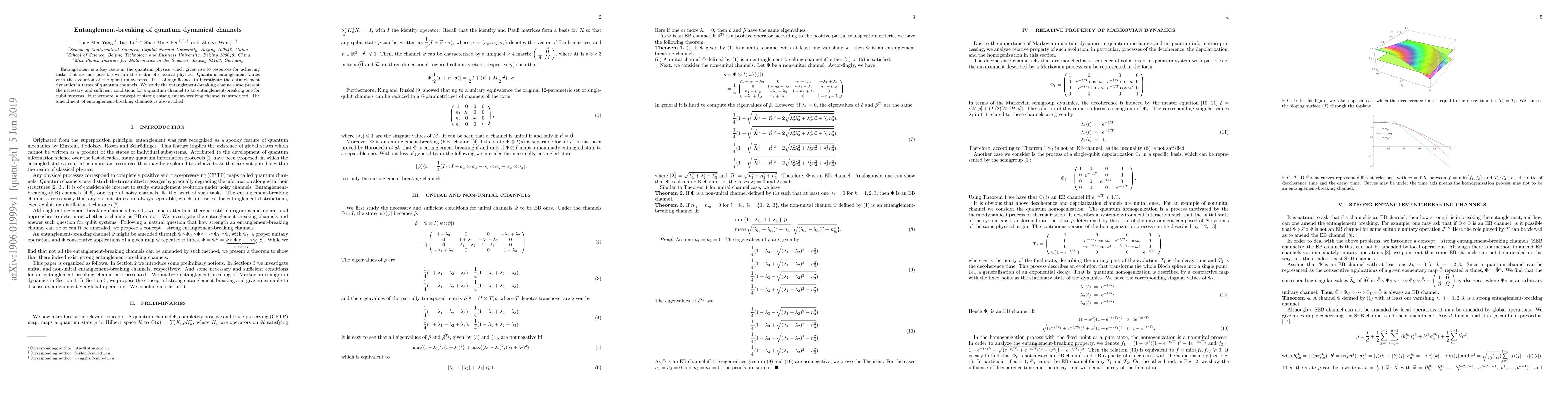 This paper investigates the dynamics of quantum entanglement through quantum channels, focusing on entanglement-breaking channels. It provides necessary and sufficient conditions for a quantum channel to break entanglement for qubit systems, introduces the concept of strong entanglement-breaking channels, and examines the amendment of these channels.