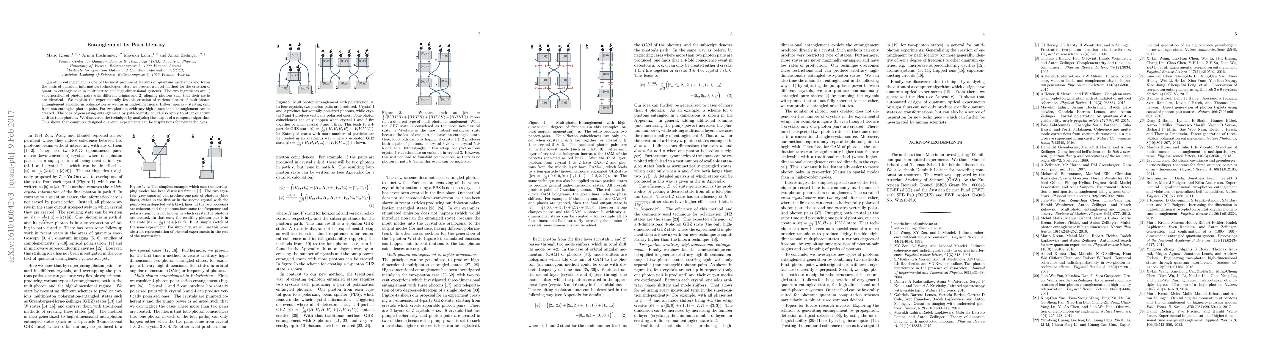 Quantum entanglement is one of the most prominent features of quantum mechanics and forms the basis of quantum information technologies. Here we present a novel method for the creation of quantum entanglement in multipartite and high-dimensional systems. The two ingredients are 1) superposition of photon pairs with different origins and 2) aligning photons such that their paths are identical. We explain the experimentally feasible creation of various classes of multiphoton entanglement encoded in polarization as well as in high-dimensional Hilbert spaces -- starting only from non-entangled photon pairs. For two photons, arbitrary high-dimensional entanglement can be created. The idea of generating entanglement by path identity could also apply to other quantum entities than photons. We discovered the technique by analyzing the output of a computer algorithm. This shows that computer designed quantum experiments can be inspirations for new techniques.