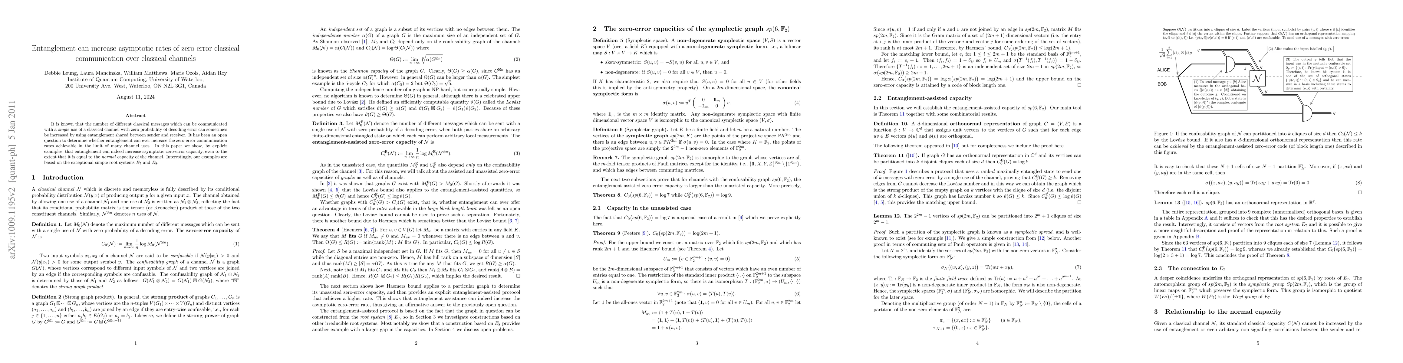 This paper demonstrates that entanglement can enhance the asymptotic zero-error capacity of classical channels, equaling the normal capacity in some cases. The authors provide explicit examples using the exceptional simple root systems E7 and E8 to illustrate this phenomenon.