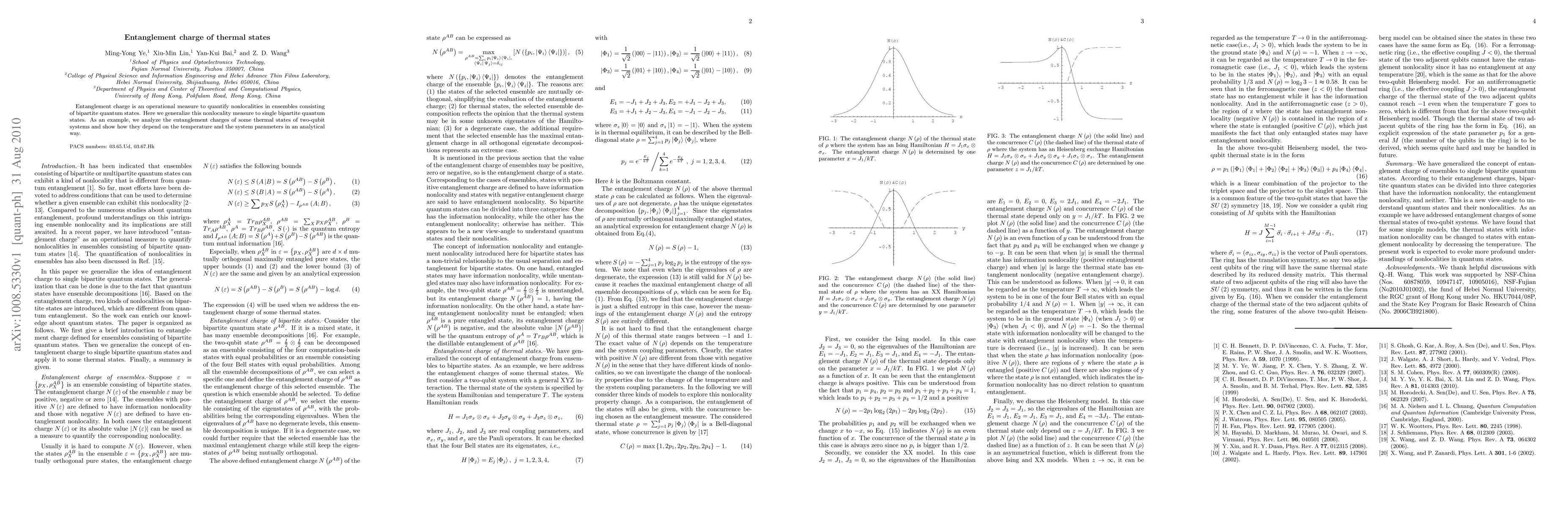 This paper generalizes the entanglement charge, a measure of nonlocality, to single bipartite quantum states, specifically analyzing thermal states of two-qubit systems and demonstrating their dependence on temperature and system parameters analytically.