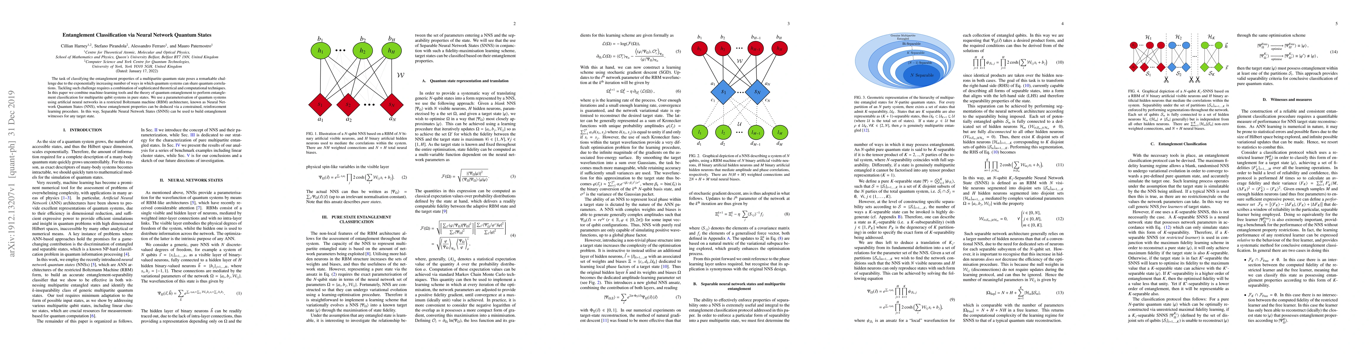 This paper employs machine-learning techniques, specifically Neural Network Quantum States (NNS) within a restricted Boltzmann machine architecture, to classify the entanglement properties of multipartite qubit systems. The approach leverages reinforcement learning to deduce entanglement and constructs entanglement witnesses using Separable Neural Network States (SNNS).