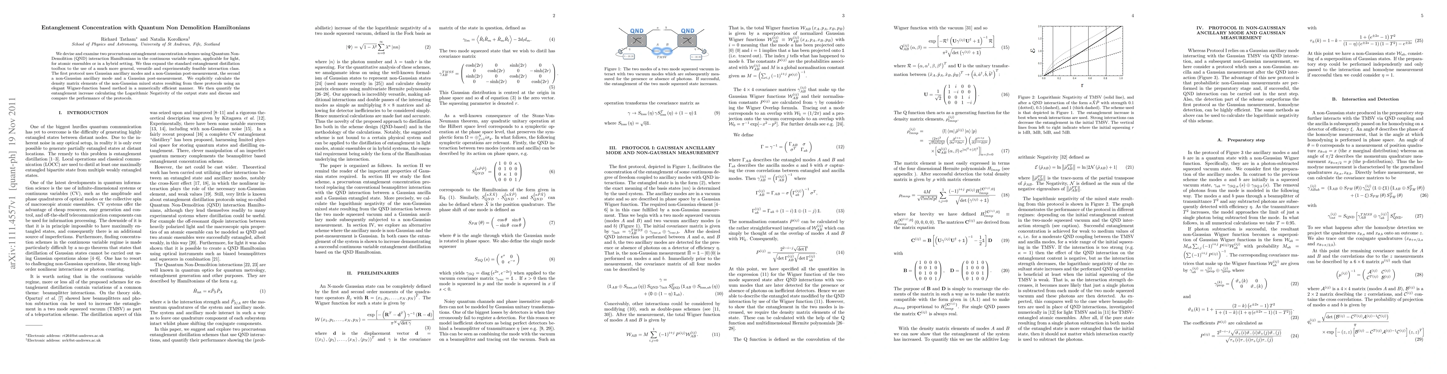 We devise and examine two procrustean entanglement concentration schemes using Quantum Non- Demolition (QND) interaction Hamiltonians in the continuous variable regime, applicable for light, for atomic ensembles or in a hybrid setting. We thus expand the standard entanglement distillation toolbox to the use of a much more general, versatile and experimentally feasible interaction class. The first protocol uses Gaussian ancillary modes and a non-Gaussian post-measurement, the second a non-Gaussian ancillary mode and a Gaussian post-measurement. We explicitly calculate the density matrix elements of the non-Gaussian mixed states resulting from these protocols using an elegant Wigner-function based method in a numerically efficient manner. We then quantify the entanglement increase calculating the Logarithmic Negativity of the output state and discuss and compare the performance of the protocols.
