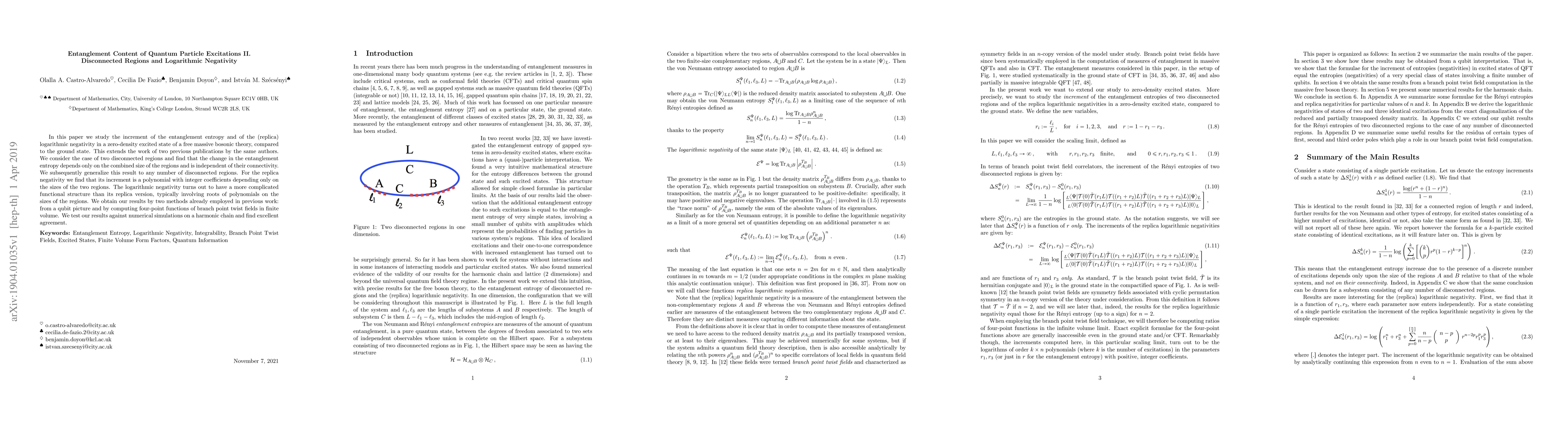 This paper investigates the entanglement entropy and logarithmic negativity increments in a zero-density excited state of a free bosonic theory, finding that the entanglement entropy change depends solely on the combined size of disconnected regions. It also reveals a polynomial relationship for replica negativity and a more complex structure for logarithmic negativity, validated by numerical simulations on a harmonic chain.