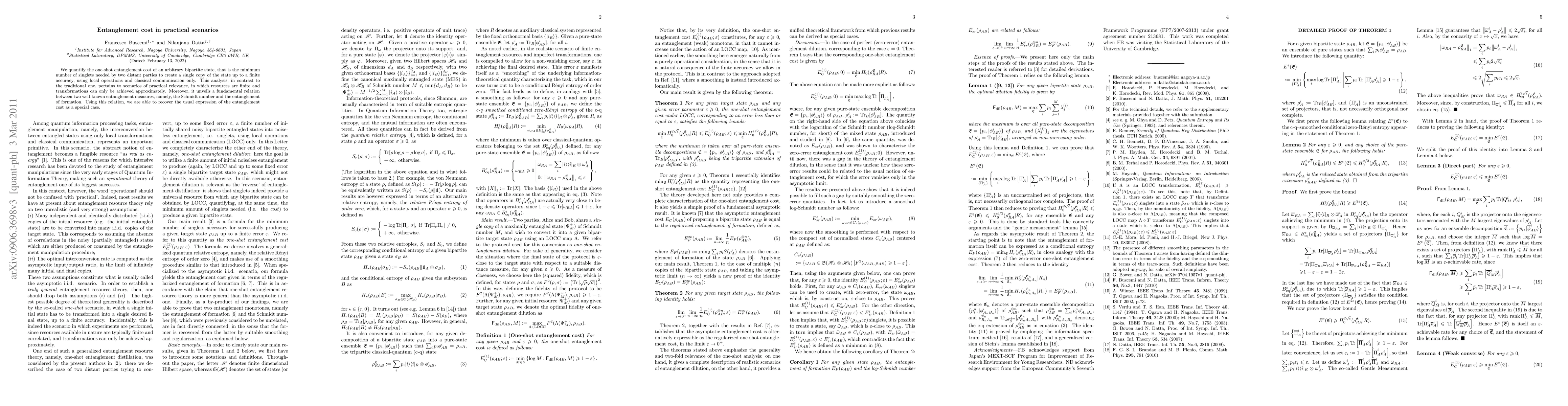 We quantify the one-shot entanglement cost of an arbitrary bipartite state, that is the minimum number of singlets needed by two distant parties to create a single copy of the state up to a finite accuracy, using local operations and classical communication only. This analysis, in contrast to the traditional one, pertains to scenarios of practical relevance, in which resources are finite and transformations can only be achieved approximately. Moreover, it unveils a fundamental relation between two well-known entanglement measures, namely, the Schmidt number and the entanglement of formation. Using this relation, we are able to recover the usual expression of the entanglement cost as a special case.