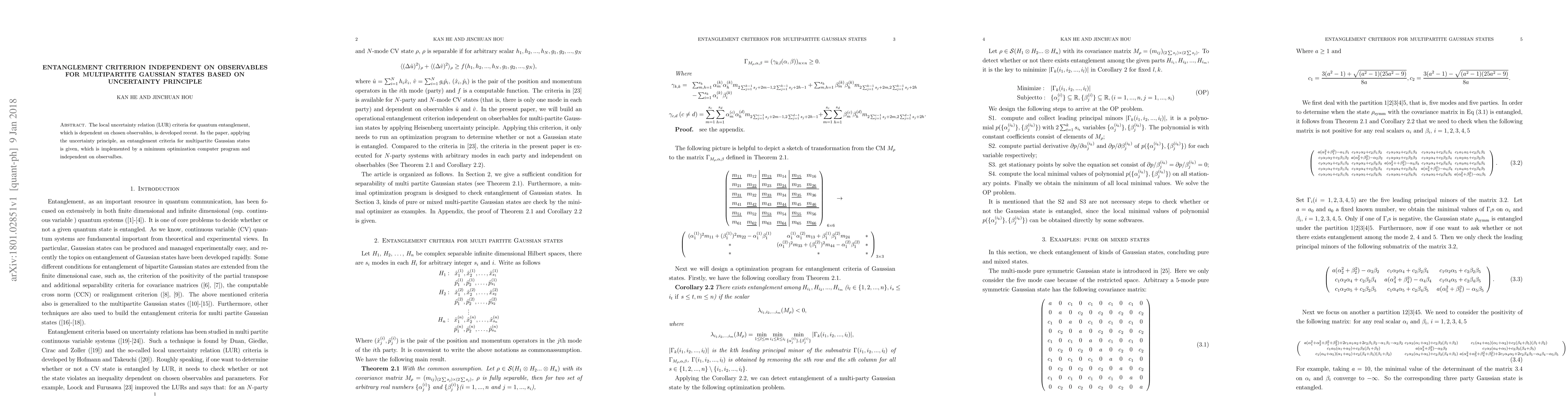 This paper proposes an entanglement criterion for multipartite Gaussian states based on the uncertainty principle, which is independent of the chosen observables, contrasting with previous local uncertainty relation criteria that depend on specific observables. The criterion is implemented using a minimum optimization computer program.