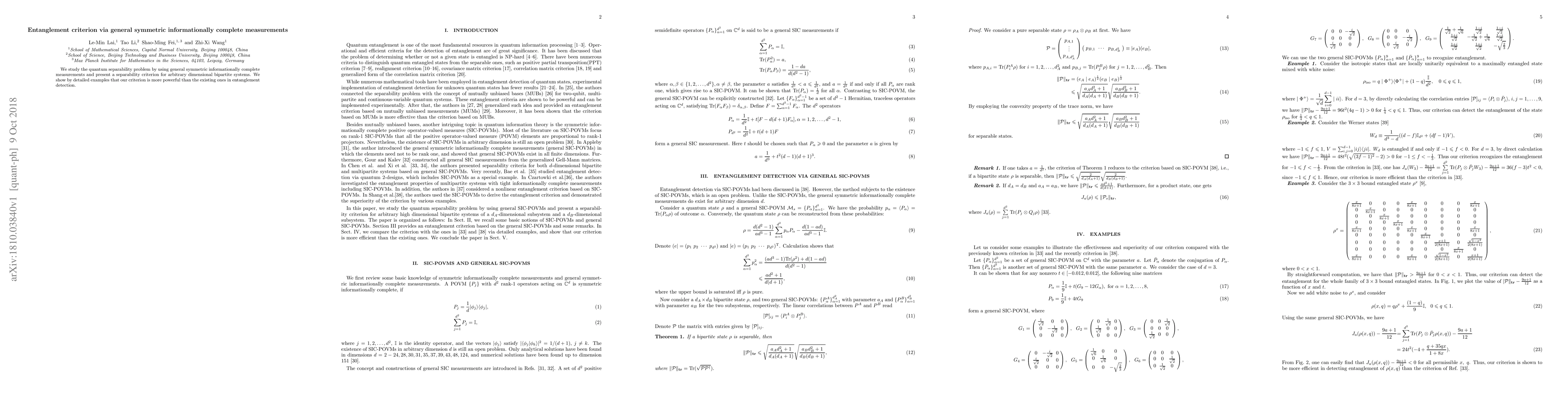 A novel approach to entanglement detection using general SIC measurements was developed and demonstrated to be highly effective.