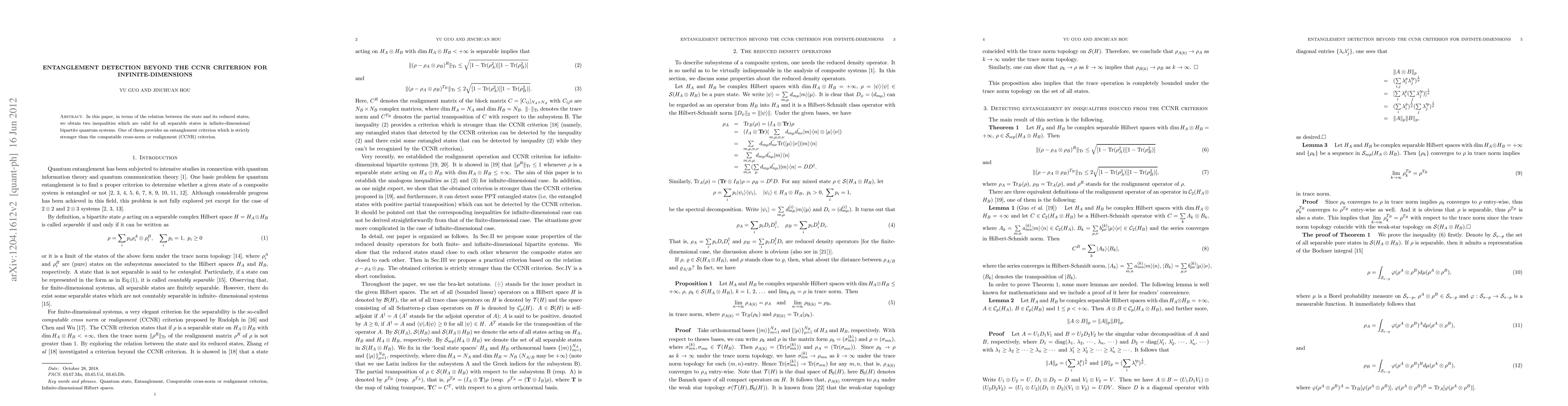 This paper presents two inequalities for infinite-dimensional bipartite quantum systems, establishing a new entanglement criterion that is stronger than the computable cross-norm or realignment (CCNR) criterion. This criterion applies to all separable states.