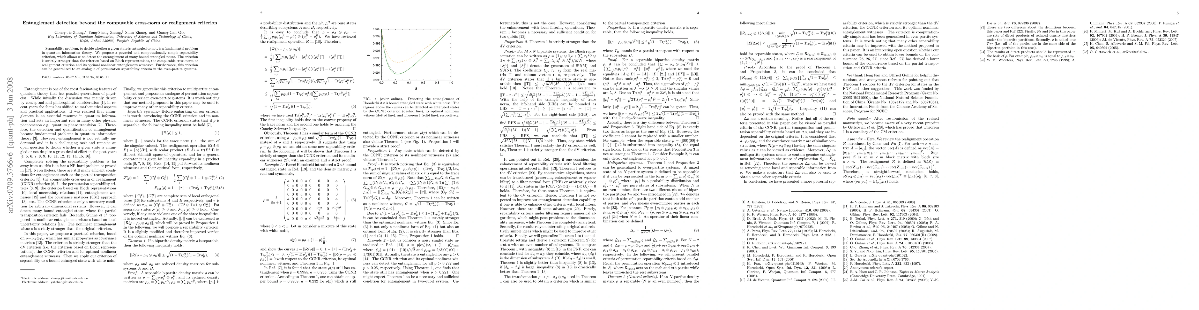 This paper introduces a new, computationally simple separability criterion for detecting entanglement, surpassing existing methods like the dV criterion and cross-norm criteria. It can identify many bound entangled states and extends to even-partite systems.
