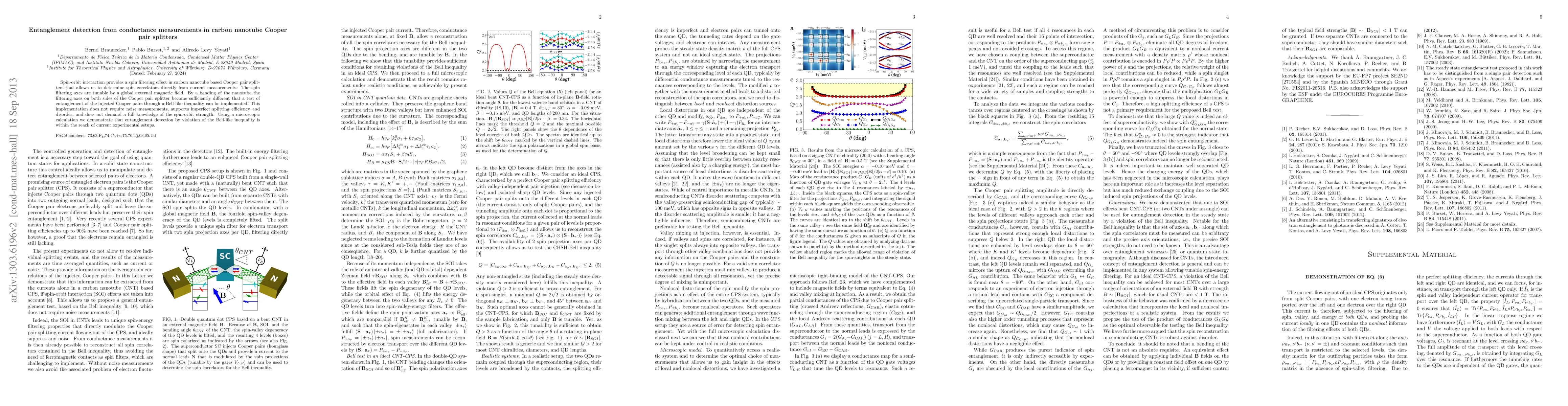 This paper proposes a method to detect entanglement in carbon nanotube Cooper pair splitters using spin-orbit interaction and conductance measurements. The approach tests entanglement via the Bell inequality without requiring noise measurements or full knowledge of spin-orbit strength, making it feasible for current experimental setups.
