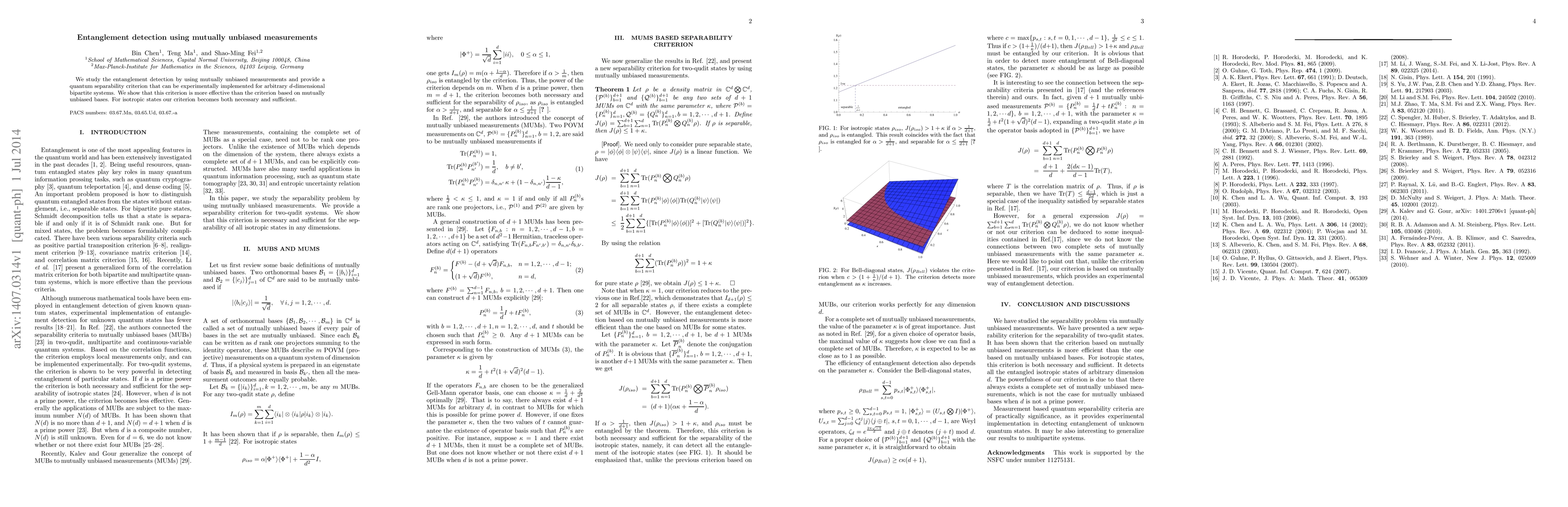 This paper proposes a new quantum separability criterion for detecting entanglement using mutually unbiased measurements, which is more effective than existing criteria based on mutually unbiased bases. For isotropic states, this criterion is shown to be both necessary and sufficient.