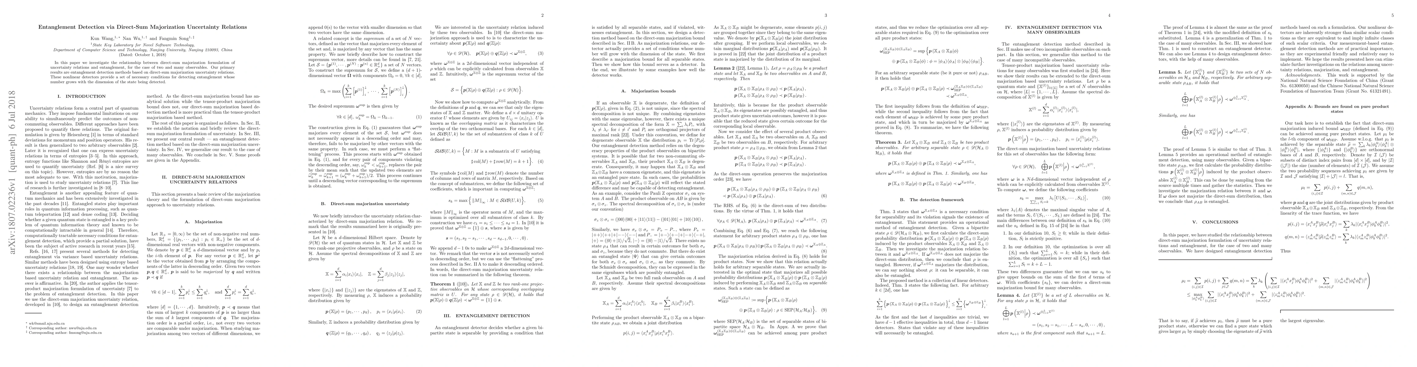 This paper explores how direct-sum majorization uncertainty relations can detect entanglement in quantum states, proposing new nonlinear detection methods that provide necessary conditions for entanglement based on these relations, with the complexity increasing with the state's dimension.