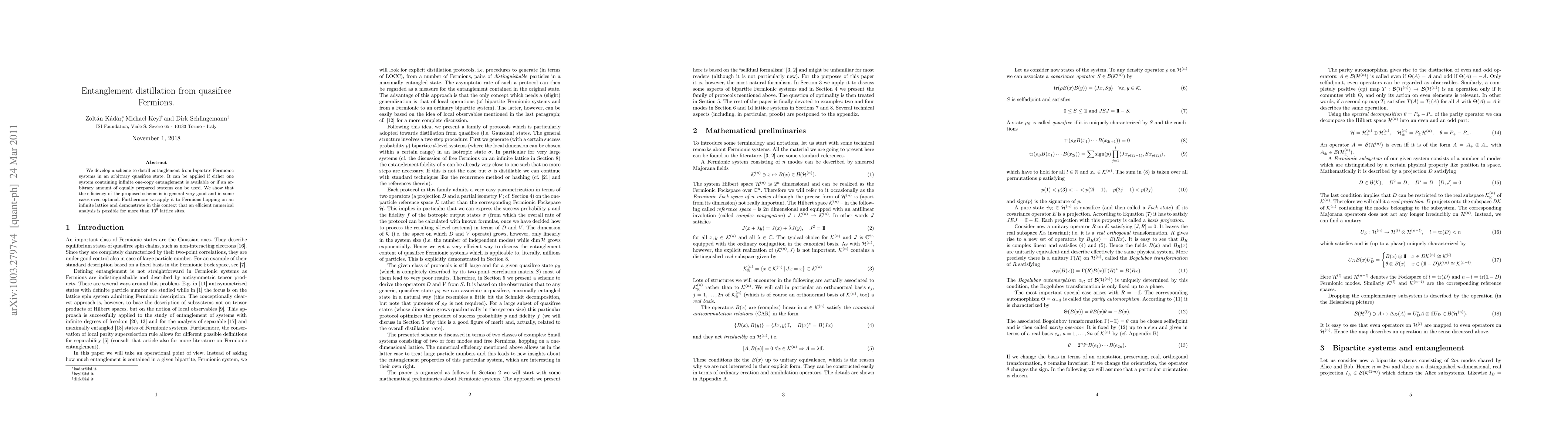 Researchers developed a scheme to distill entanglement from bipartite Fermionic systems in arbitrary quasifree states, with high efficiency and optimal results in some cases.