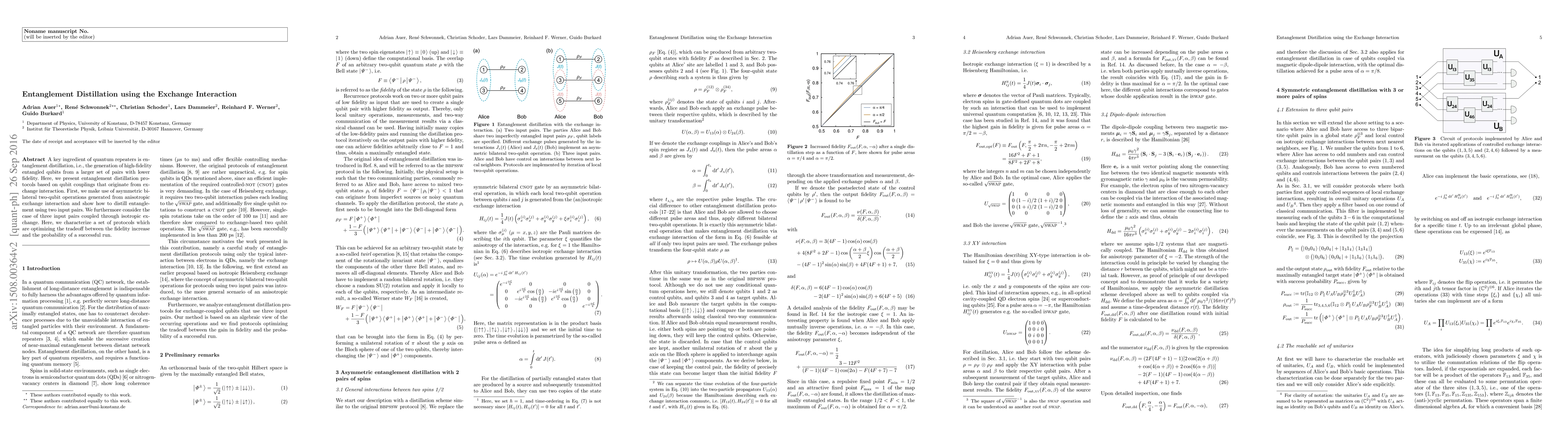 The paper introduces entanglement distillation protocols based on exchange interaction, utilizing asymmetric bilateral two-qubit operations and analyzing three input pairs coupled through isotropic exchange, providing a novel approach to generating high-fidelity entangled qubits.