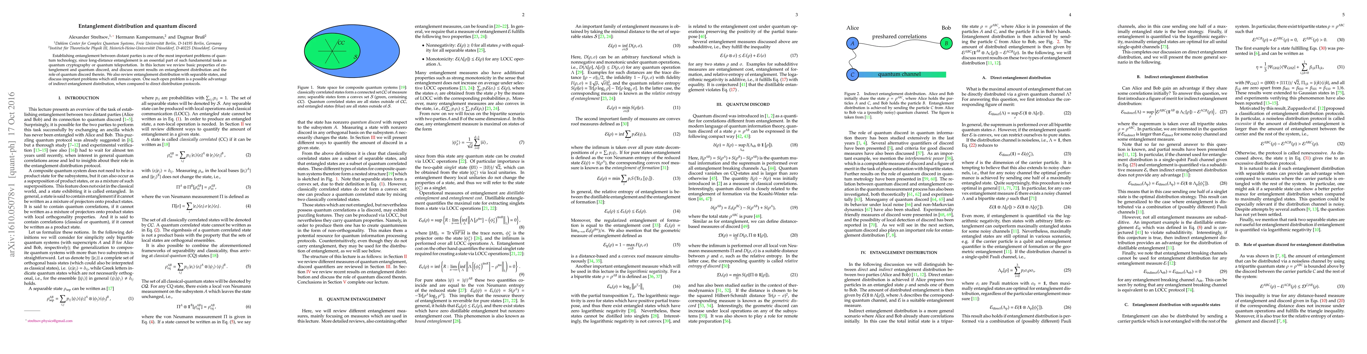 This paper reviews the fundamental properties of entanglement and quantum discord, focusing on recent advances in entanglement distribution and the role of quantum discord. It also discusses open questions, including the potential benefits of indirect versus direct entanglement distribution protocols.