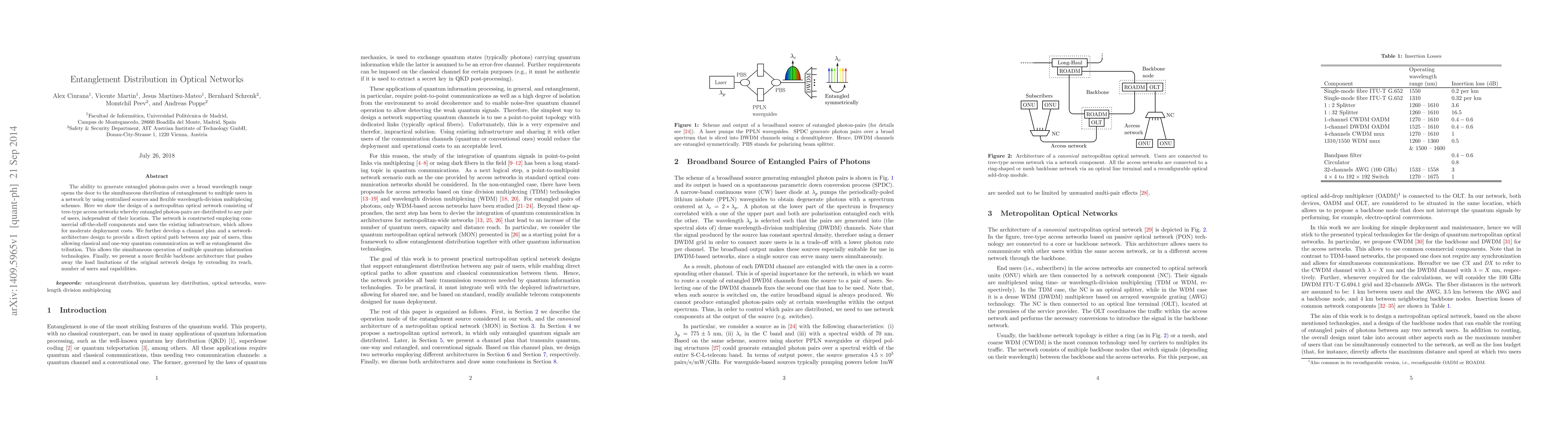 The ability to generate entangled photon-pairs over a broad wavelength range opens the door to the simultaneous distribution of entanglement to multiple users in a network by using centralized sources and flexible wavelength-division multiplexing schemes. Here we show the design of a metropolitan optical network consisting of tree-type access networks whereby entangled photon-pairs are distributed to any pair of users, independent of their location. The network is constructed employing commercial off-the-shelf components and uses the existing infrastructure, which allows for moderate deployment costs. We further develop a channel plan and a network-architecture design to provide a direct optical path between any pair of users, thus allowing classical and one-way quantum communication as well as entanglement distribution. This allows the simultaneous operation of multiple quantum information technologies. Finally, we present a more flexible backbone architecture that pushes away the load limitations of the original network design by extending its reach, number of users and capabilities.