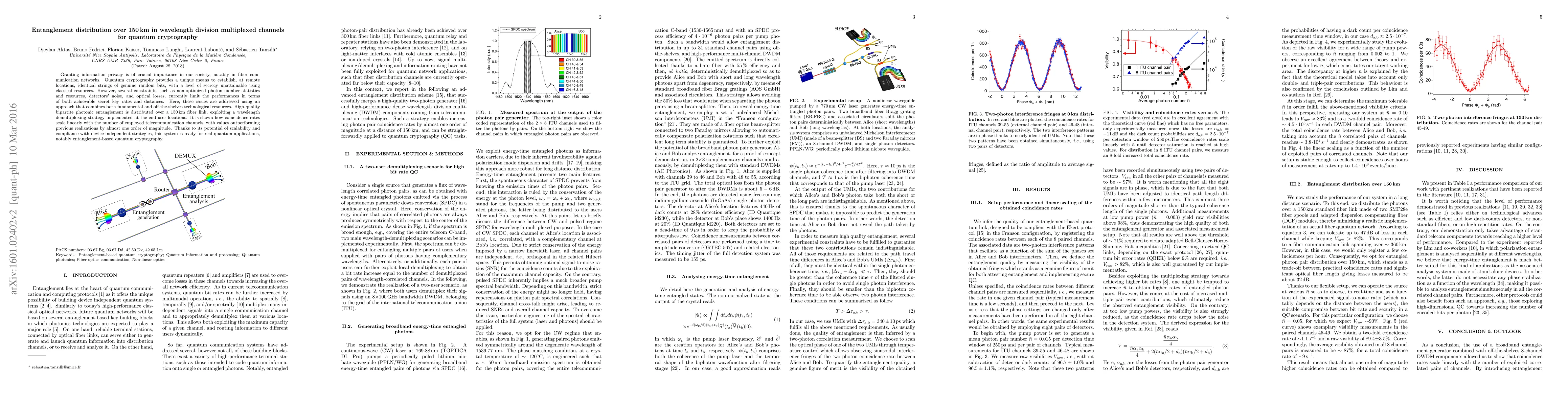 This paper presents an advanced method for distributing high-quality bipartite photonic entanglement over a 150 km fiber link using wavelength division multiplexing, achieving significantly higher coincidence rates than previous methods. The scalable approach addresses current limitations in quantum cryptography, paving the way for practical quantum communication applications.