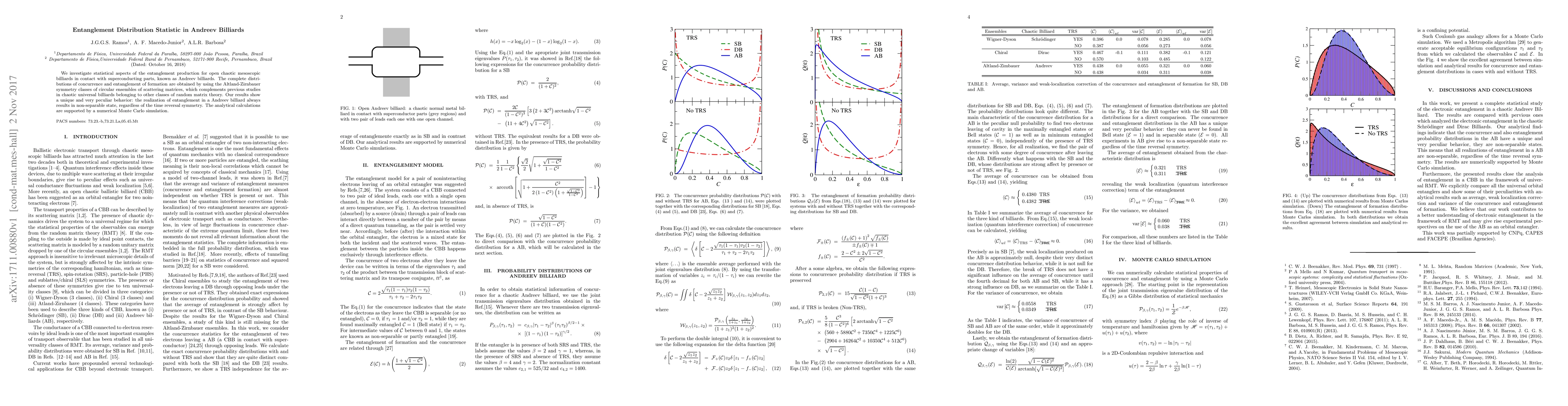 This paper explores the statistical entanglement distribution in Andreev billiards, revealing that entanglement always results in non-separable states regardless of time reversal symmetry. The study employs Altland-Zirnbauer symmetry classes and is validated by both analytical calculations and numerical Monte Carlo simulations.