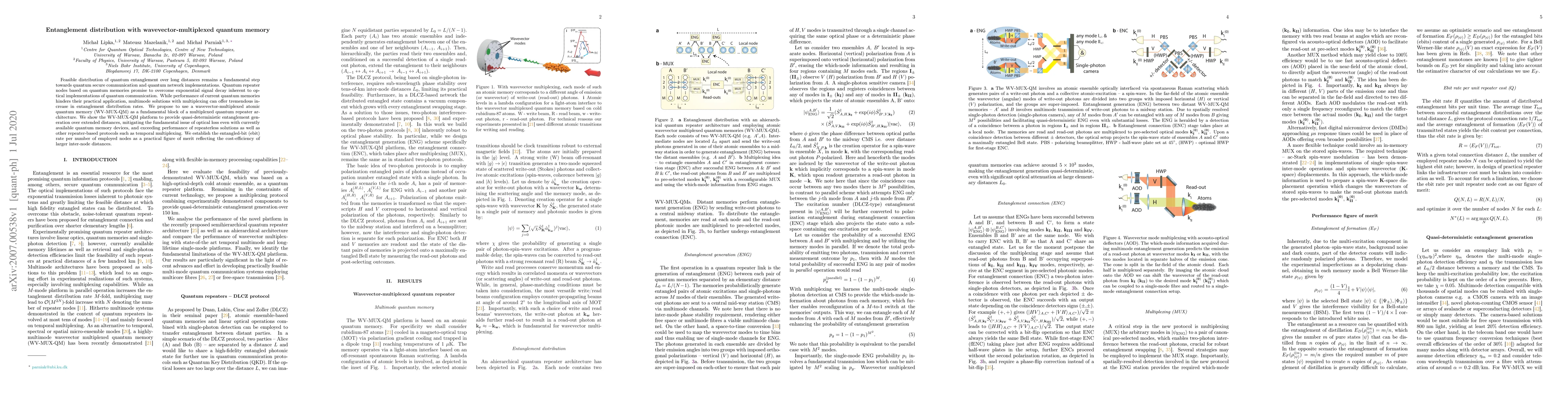 This paper proposes a wavevector-multiplexed quantum memory to enhance the distribution of quantum entanglement over long distances. The suggested platform achieves quasi-deterministic entanglement generation, outperforming other quantum repeater protocols and enabling cost-effective quantum communication networks.