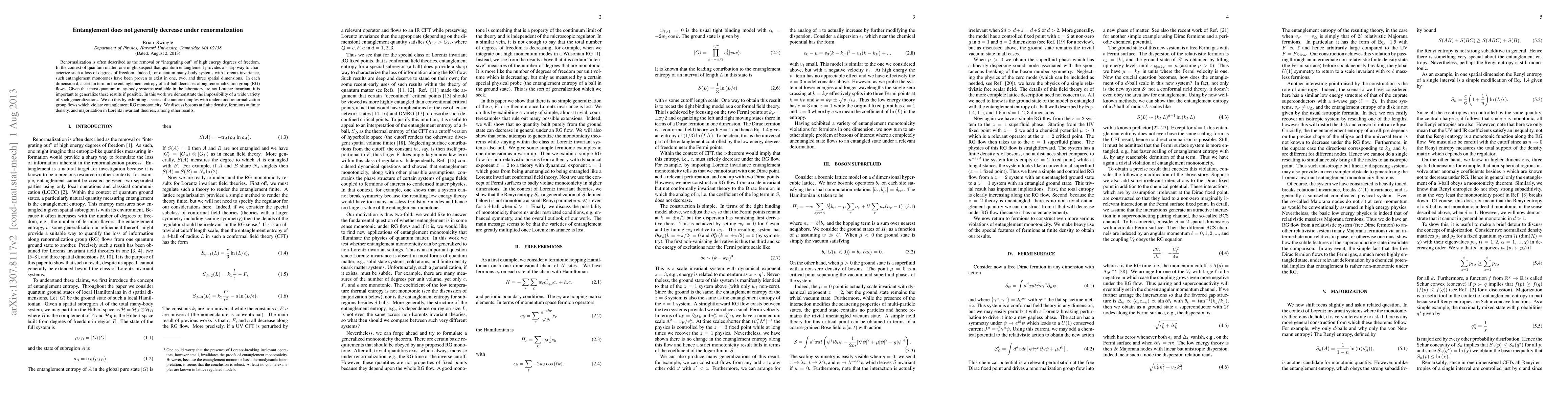 Renormalization is often described as the removal or "integrating out" of high energy degrees of freedom. In the context of quantum matter, one might suspect that quantum entanglement provides a sharp way to characterize such a loss of degrees of freedom. Indeed, for quantum many-body systems with Lorentz invariance, such entanglement monotones have been proven to exist in one, two, and three spatial dimensions. In each dimension d, a certain term in the entanglement entropy of a d-ball decreases along renormalization group (RG) flows. Given that most quantum many-body systems available in the laboratory are not Lorentz invariant, it is important to generalize these results if possible. In this work we demonstrate the impossibility of a wide variety of such generalizations. We do this by exhibiting a series of counterexamples with understood renormalization group flows which violate entanglement RG monotonicity. We discuss bosons at finite density, fermions at finite density, and majorization in Lorentz invariant theories, among other results.