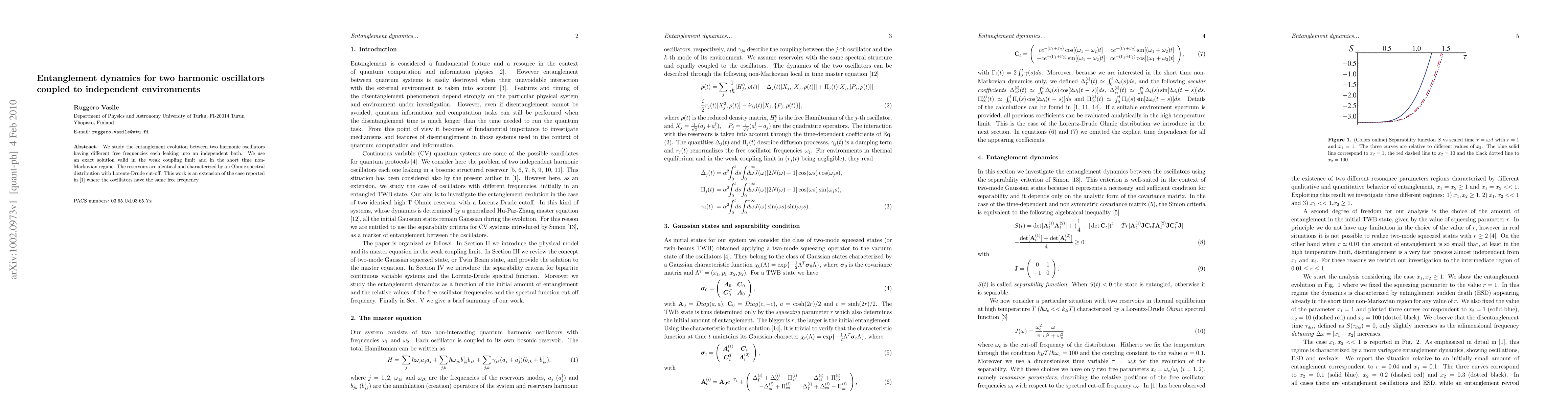 Researchers studied entanglement dynamics between two harmonic oscillators coupled to independent environments with different free frequencies, finding that the reservoirs' spectral distribution affects entanglement evolution.