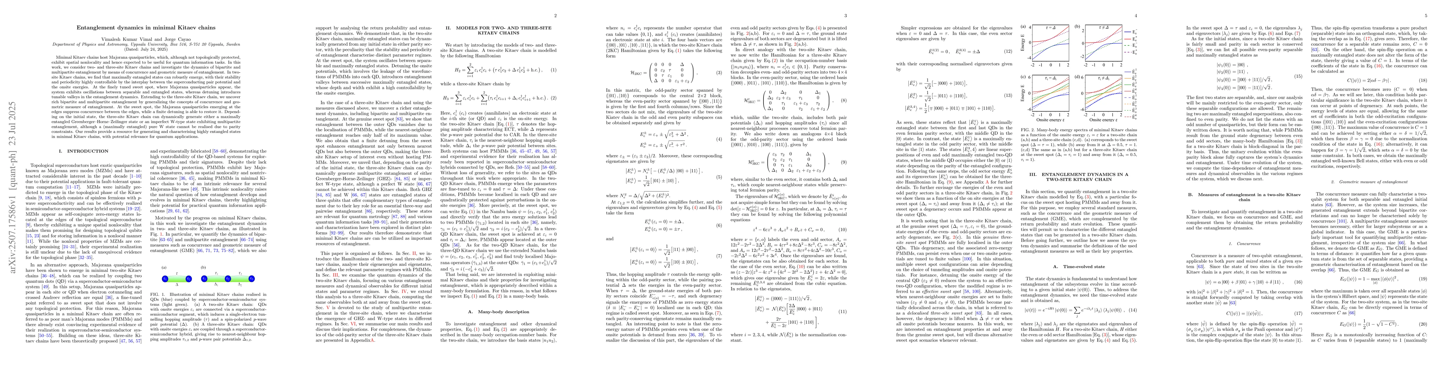 A combination of theoretical modeling and numerical simulations were used to study the behavior of multipartite entangled systems in a three-site Kitaev chain.