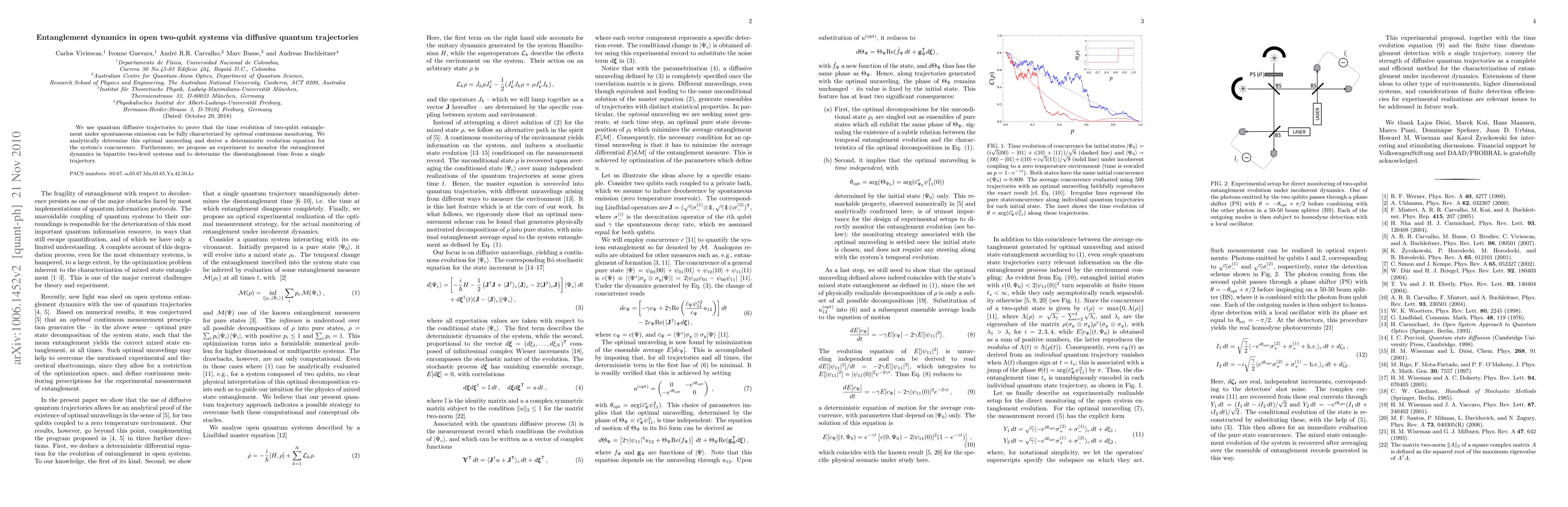 This paper demonstrates that the entanglement dynamics in open two-qubit systems can be characterized via optimal continuous monitoring using quantum diffusive trajectories. It analytically derives a deterministic evolution equation for the system's concurrence and proposes an experimental method to observe these dynamics and determine disentanglement time.