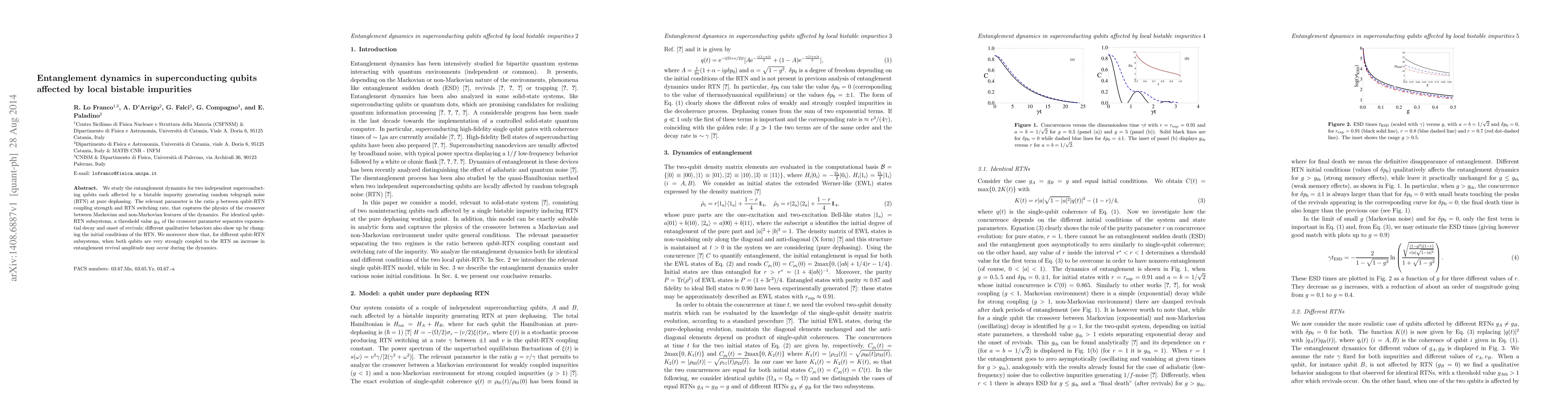 Researchers studied how impurities affect entanglement in superconducting qubits, finding that a certain threshold value can lead to revivals of entanglement over time. Increasing the coupling strength between qubits and these impurities can even enhance these revival events.