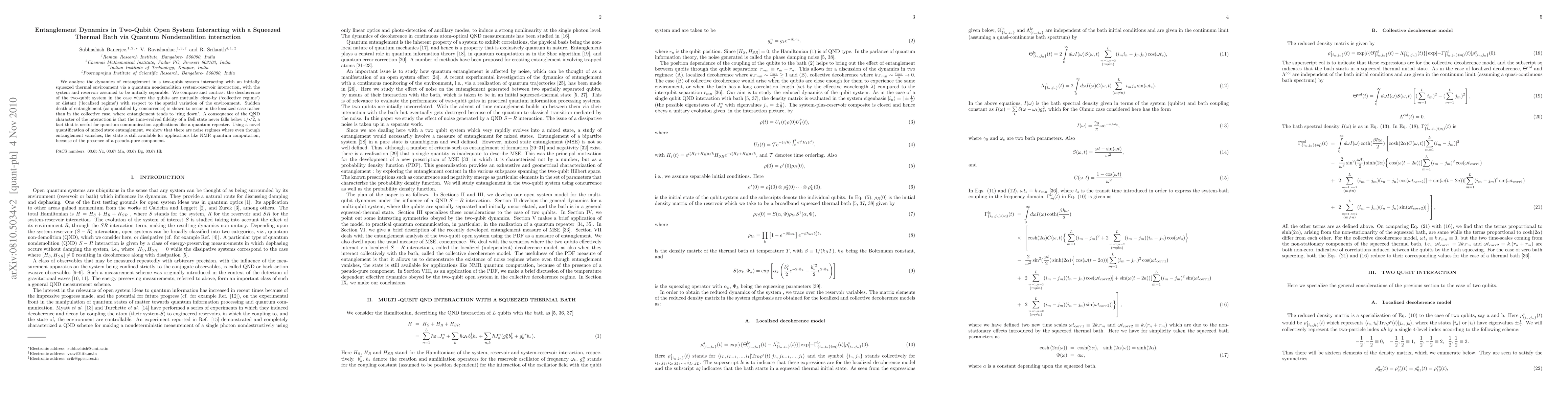 We analyze the dynamics of entanglement in a two-qubit system interacting with an initially squeezed thermal environment via a quantum nondemolition system-reservoir interaction, with the system and reservoir assumed to be initially separable. We compare and contrast the decoherence of the two-qubit system in the case where the qubits are mutually close-by (`collective regime') or distant (`localized regime') with respect to the spatial variation of the environment. Sudden death of entanglement (as quantified by concurrence) is shown to occur in the localized case rather than in the collective case, where entanglement tends to `ring down'. A consequence of the QND character of the interaction is that the time-evolved fidelity of a Bell state never falls below $1/\sqrt{2}$, a fact that is useful for quantum communication applications like a quantum repeater. Using a novel quantification of mixed state entanglement, we show that there are noise regimes where even though entanglement vanishes, the state is still available for applications like NMR quantum computation, because of the presence of a pseudo-pure component.