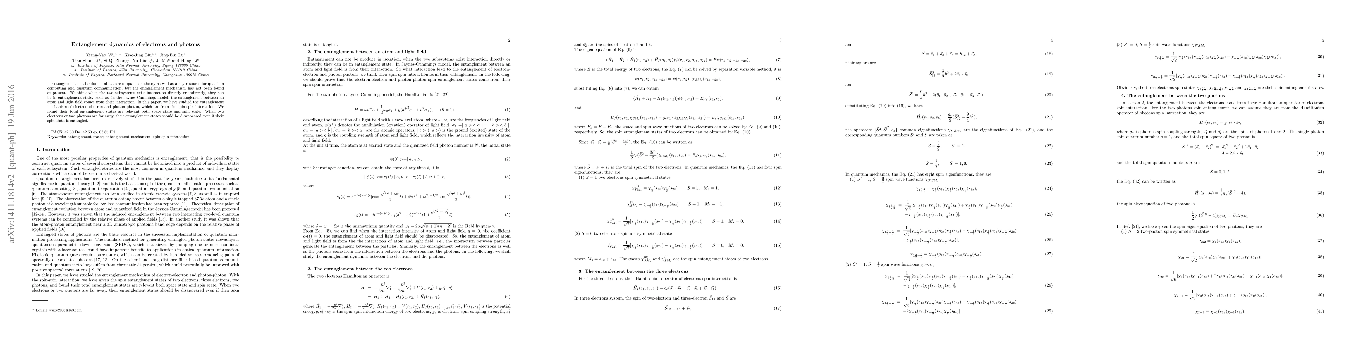 This paper investigates the entanglement dynamics between electrons and photons, focusing on the spin-spin interaction as the source of entanglement. The study reveals that entanglement in electron-electron and photon-photon pairs depends on both spatial and spin states, and diminishes over distance despite spin entanglement.