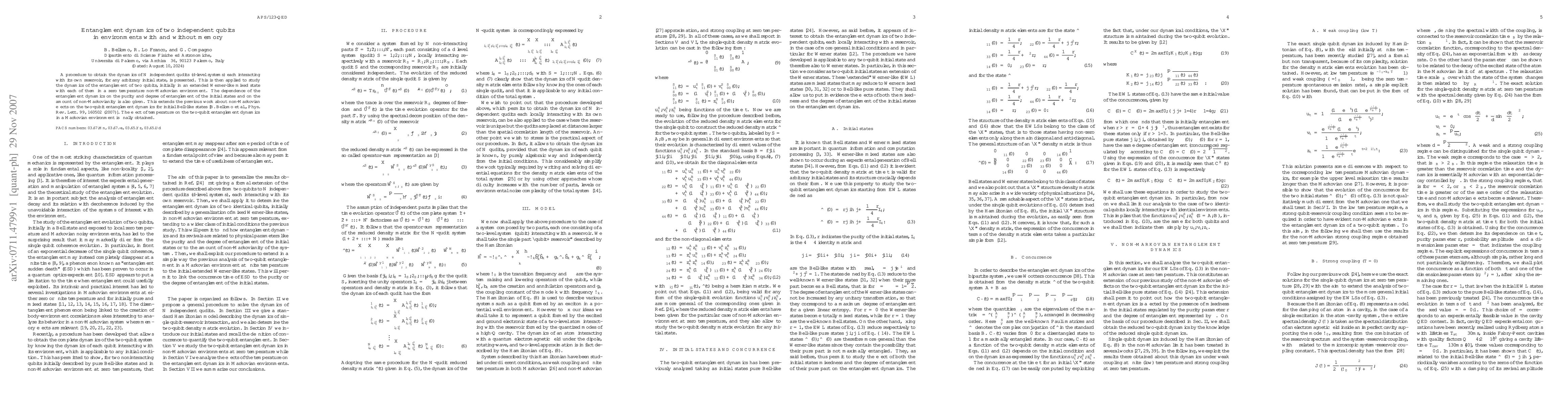 This paper presents a method to study the dynamics of entanglement in $N$ independent qudits, focusing on two qubits in non-Markovian environments. It analyzes the impact of initial state purity and non-Markovianity on entanglement, extending previous work on Bell-like states and including the effect of temperature in Markovian environments.