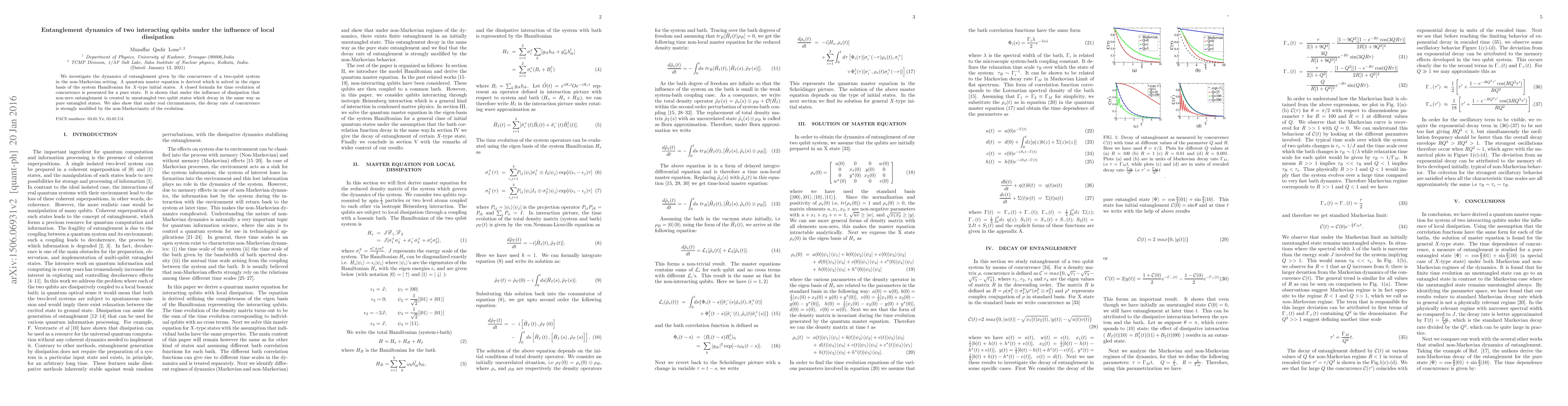 This paper investigates how entanglement dynamics changes when qubits interact with dissipation, showing that non-zero entanglement can be created from unentangled states and its decay rate is modified by non-Markovian evolution.